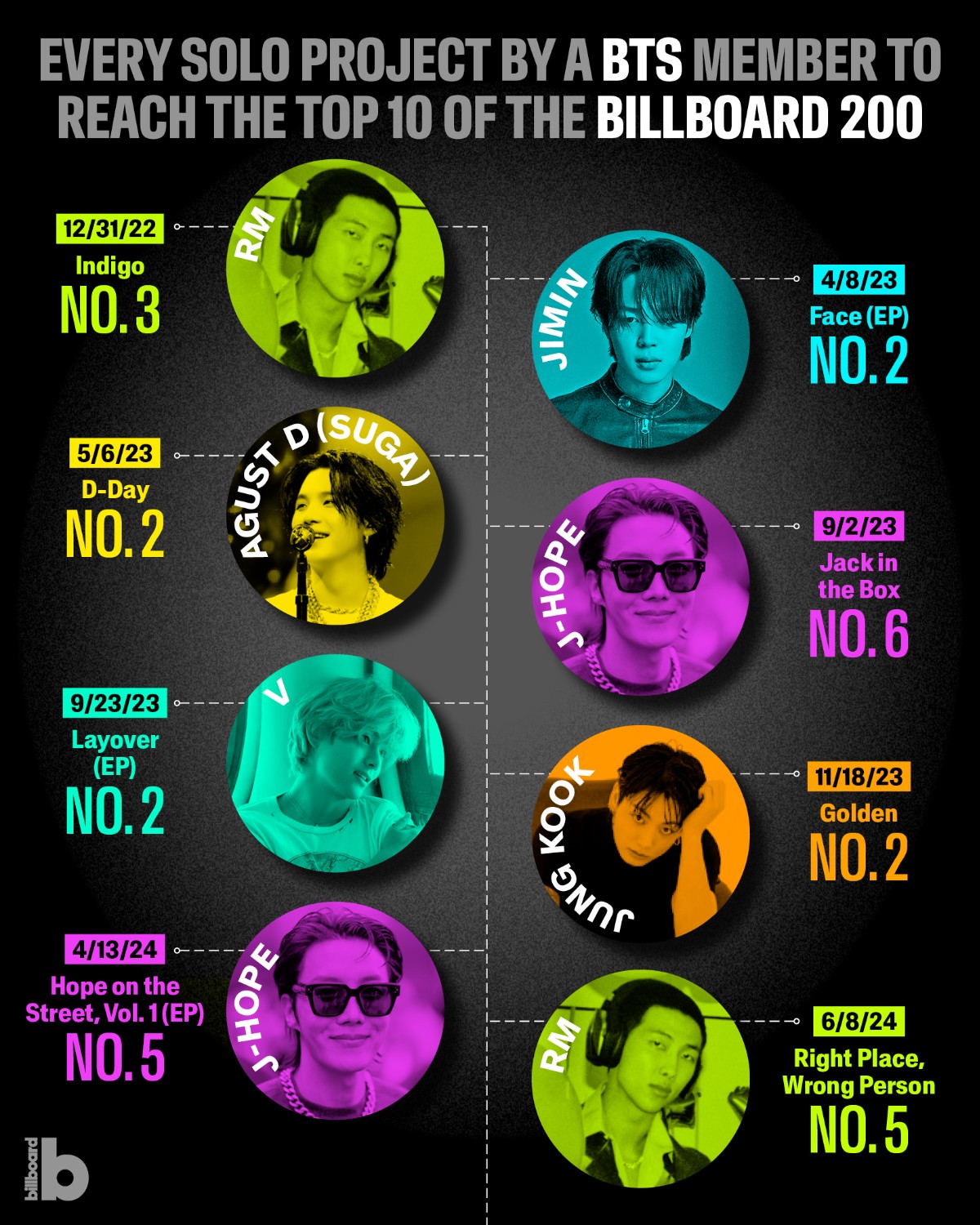 ✨ทุกโปรเจ็คท์โซโล่ของเมมเบอร์ BTS เข้าสู่ TOP 10 บน Billboard 200