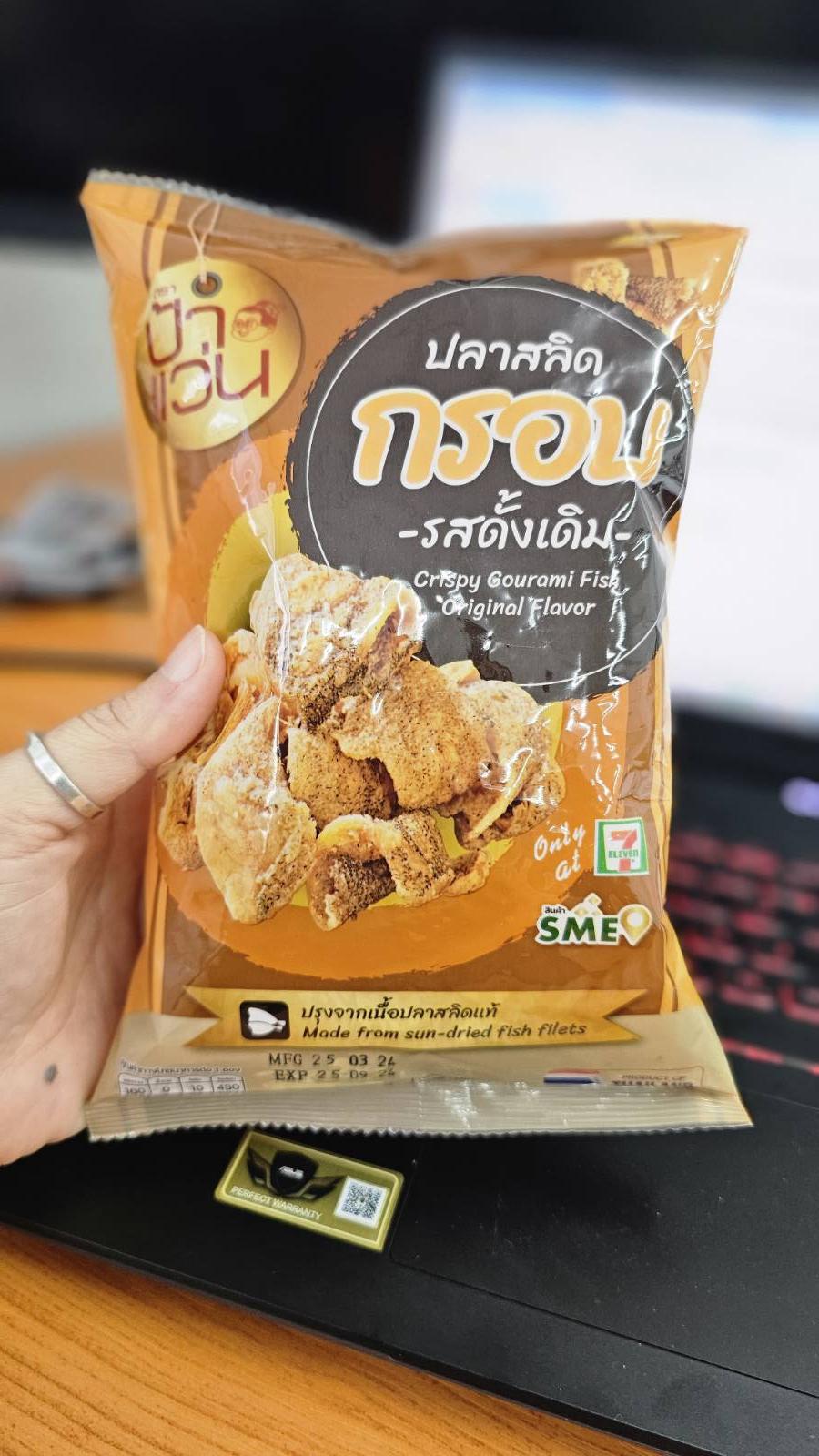 สมัยผมเด็ก ๆ ปลาสลิดเป็นของถูก เหมือนคนไม่นิยม แถมชื่อยังไม่เป็นมงคล จนต้องเรียกว่าปลาใบไม้... พอแก่แล้วปลาสลิดเป็นของแพงของอร่อย ปลาสลิดทอดกรอบซอง 100 กรัมแบบชิ้นใหญ่ตามรูปนี้ ราคาตั้ง 200-220 บาท ถ