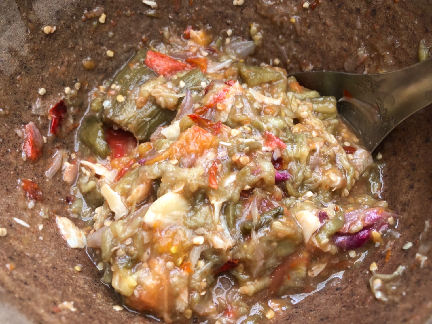 จากในภาพ แต่ละท่านคิดว่า ส่วนที่หายไปมันไปอยู่ตรงไหน หรือมันก็อยู่ในส้มตำ แล้วก็เข้าสู่ร่างกายของเรา ทำไมร้านไม่คิดจะเปลี่ยนอันใหม่ หรือเขาประหยัดต้นทุน หรือความจริงแล้วเขาตั้งใจให้เป็นแบบนี้ มีความสะ