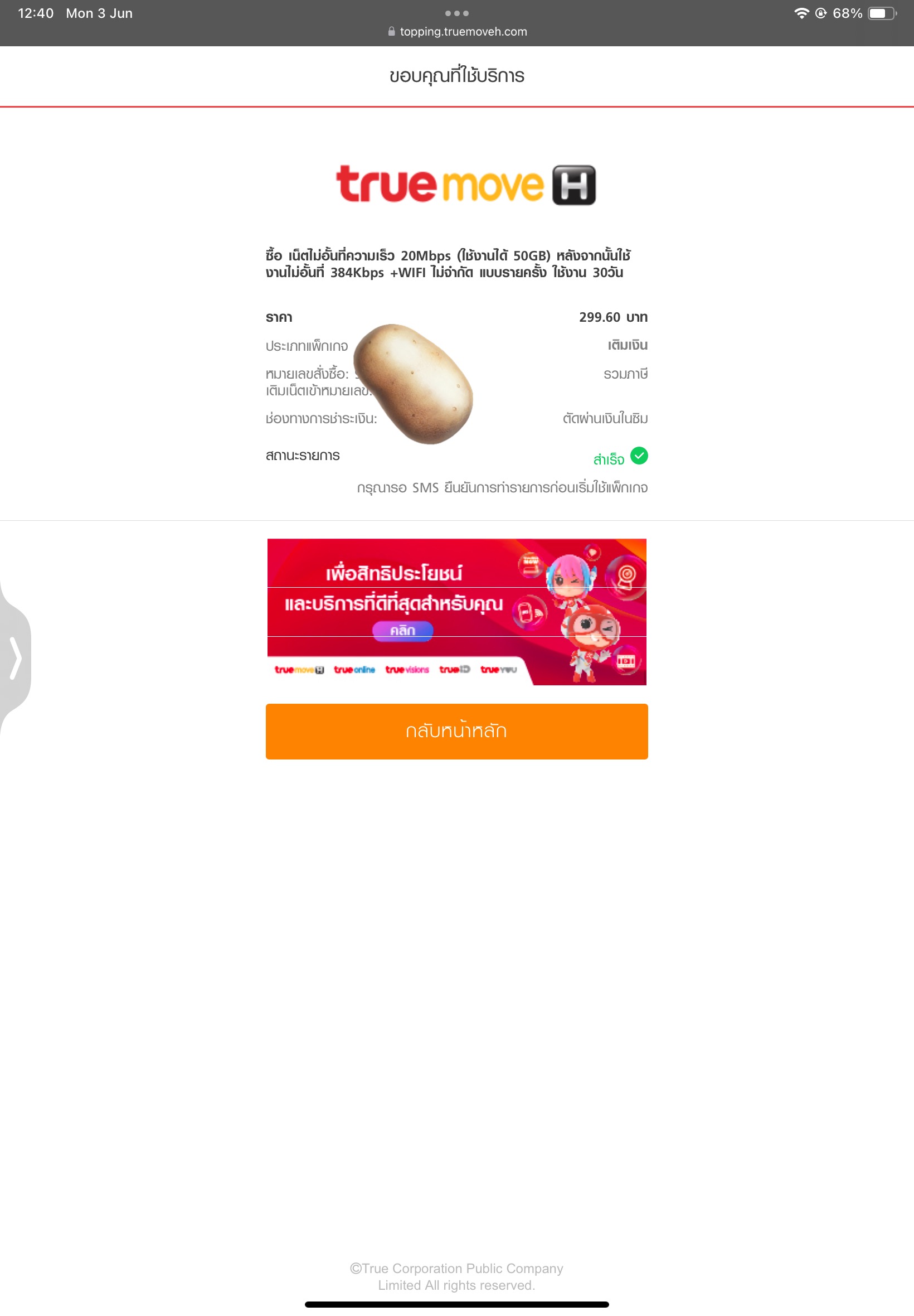 ปัญหา TrueMove H ซื้อแพกเก็จแล้วออกเนตไม่ได้