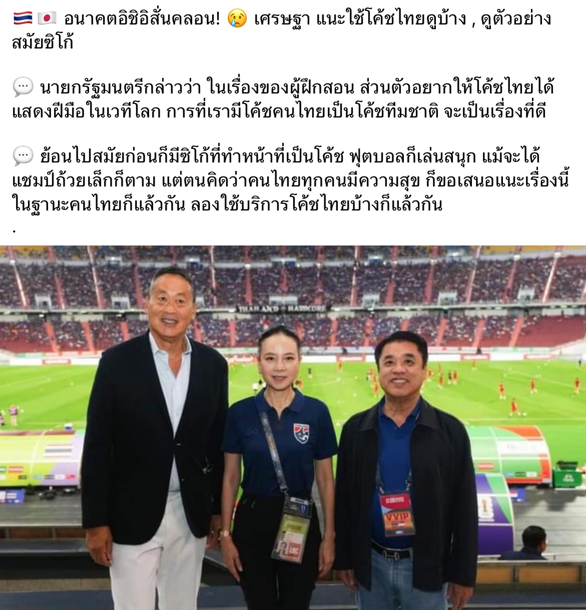 ดูนายกแนะสมาคมฟุตบอล “อยากได้โค้ชไทยในเวทีโลก” “แม้แชมป์ได้ถ้วยเล็กก็ตาม แต่ตนคิดว่าคนมีความสุข”