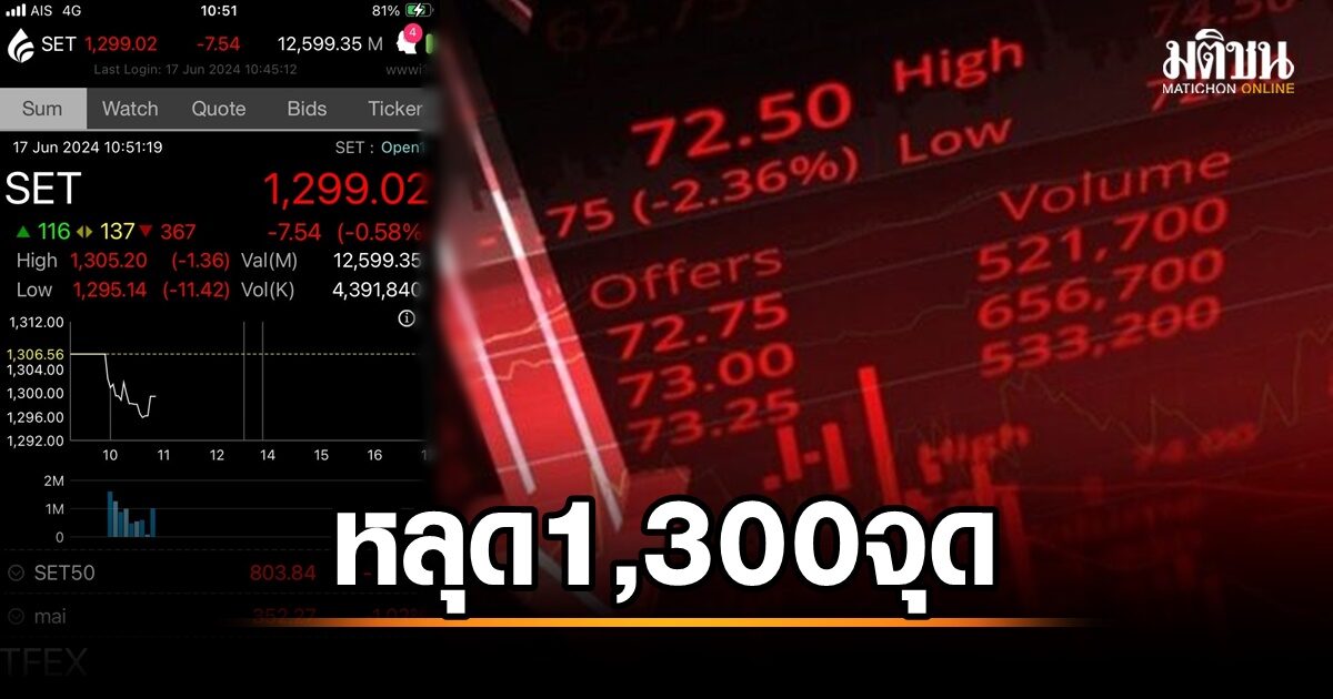 หุ้นเปิดตลาดทิ้งตัวหลุดระดับ 1,300 จุด รับความเสี่ยงการเมืองไทยระอุ-หวั่นสหรัฐไม่ลดดอก