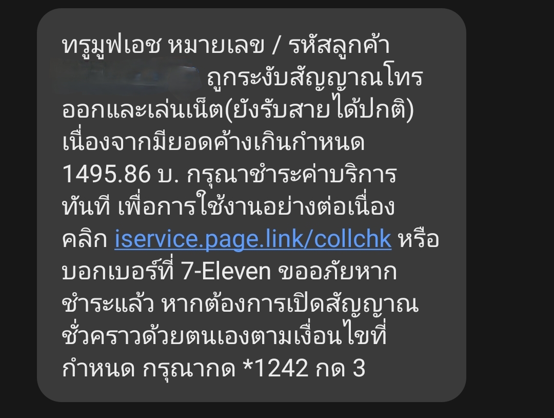 ทรูส่งใบแจ้งเตือนยอดชำระค้างมาที่บ้าน