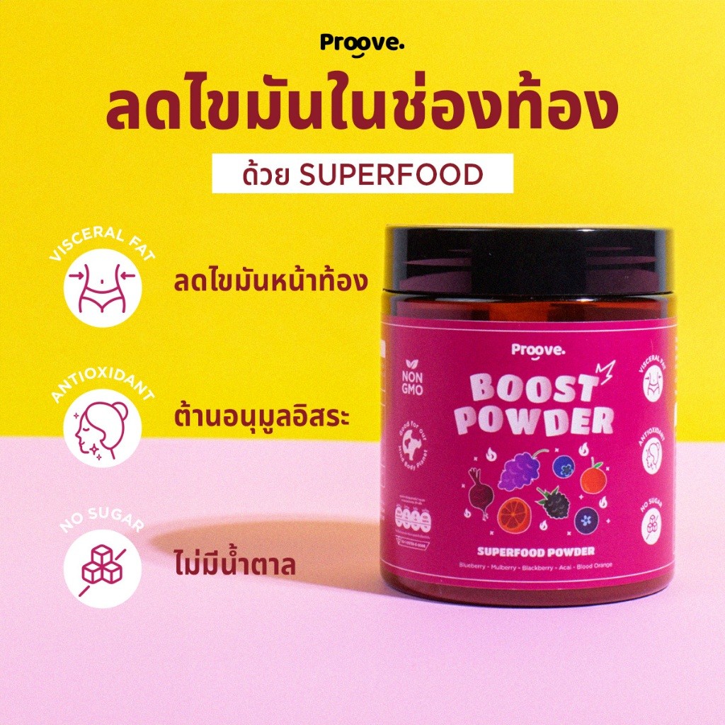 Proove Powder ผงซุปเปอร์ฟู้ด สูตรส้มสีเลือด อาซาอิ มิกซ์เบอร์รี่ ช่วยลดไขมันหน้าท้อง บำรุงผิว ด้วยสารต้านอนุมูลอิสระ
