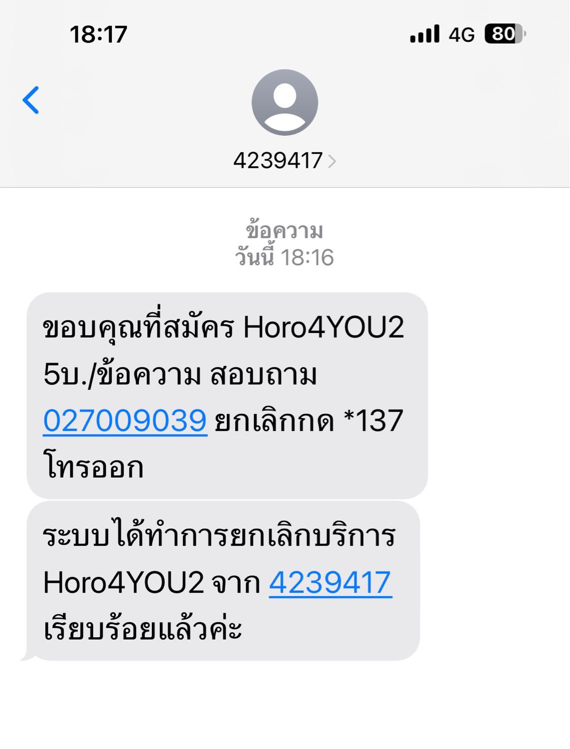 อยู่ๆมีข้อความมาเก็บเงินจะยกเลิกให้กดยกเลิกเอง พร้อมแจ้งหักตัง 9 บาท/วัน ไม่ได้เข้าเว็บอันครายเลย ไม่ได้กดลิงค์แปลก ไม่ได้ลง app แปลก ใช้ ios ด้วย เหมือนมันหว่า