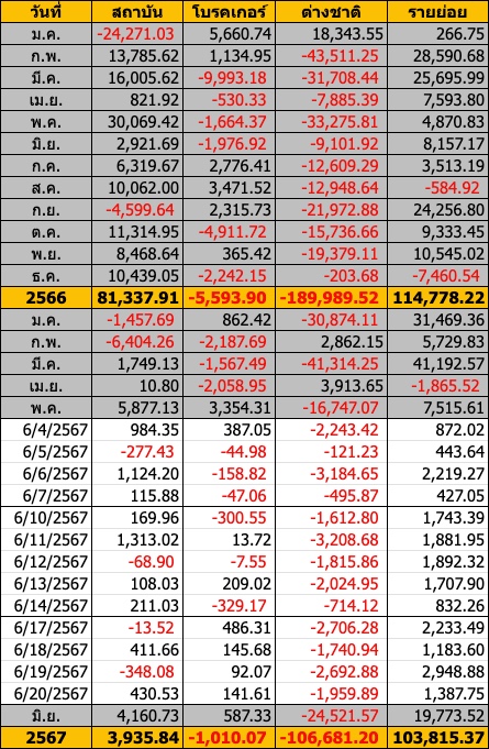 Sinthorn Summary 19/6/2567 : ต่างชาติขายสุทธิ -2,692.88 ลบ.