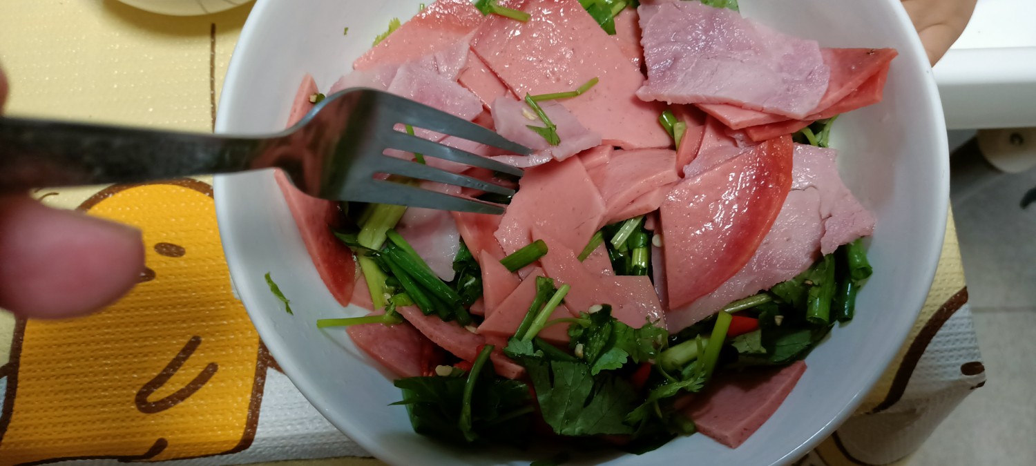 มื้อเย็นทานอะไรกันบ้างครับ? ผมยำแฮม โบโลน่า ครับ