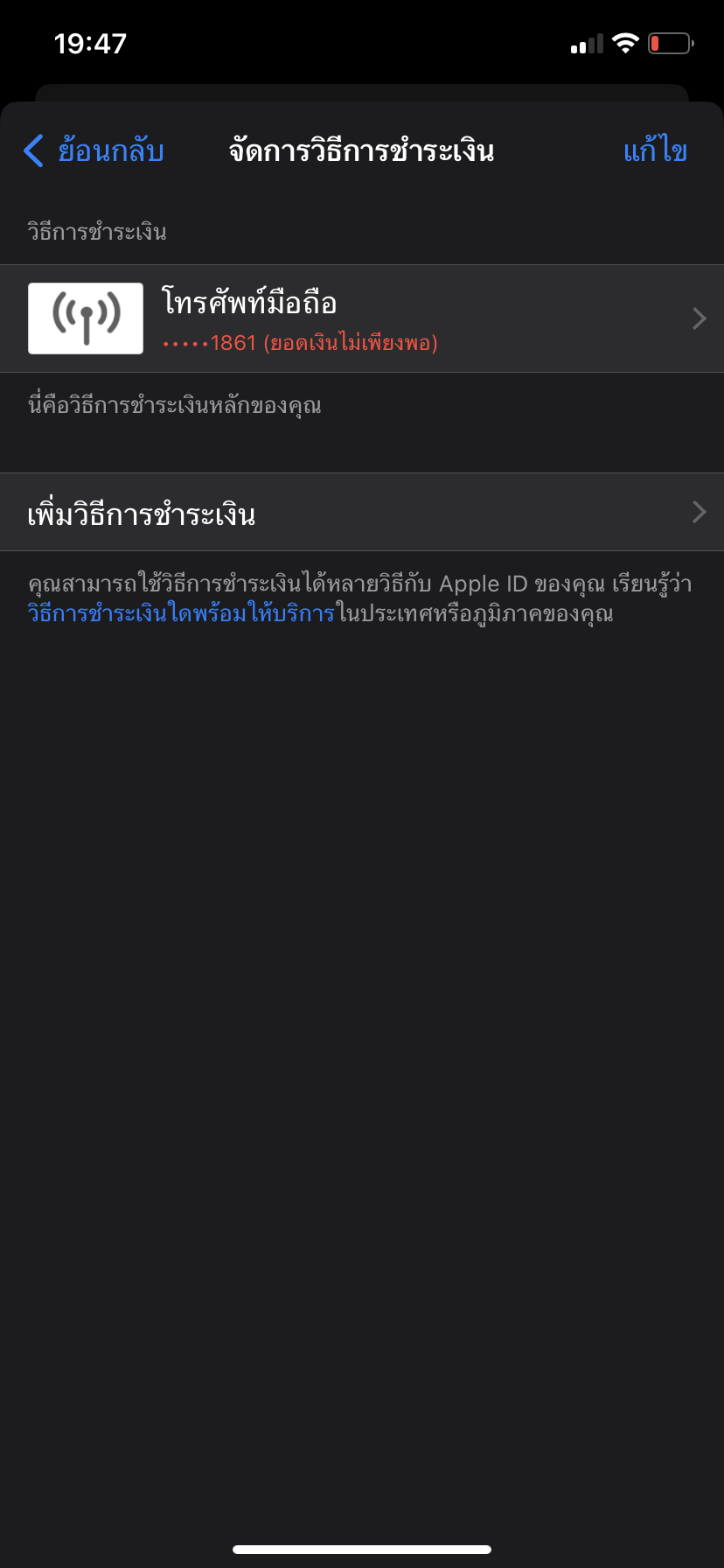 เป็นซิมรายเดือน ตอนแรกพยายามจ่ายในทรูมันนี่แล้ว แต่พอกดหาเบอร์ที่จะชำระมันไม่ขึ้น โหลดแอปทรูมา พอจะลงทะเบียน มันก็ต้องส่ง OTP มาที่เบอร์ทรูที่ค้างชำระ ซึ่งมันไม่มีสัญญาณ รับ OTP ไม่ได้ สรุปแล้วต้องชำร
