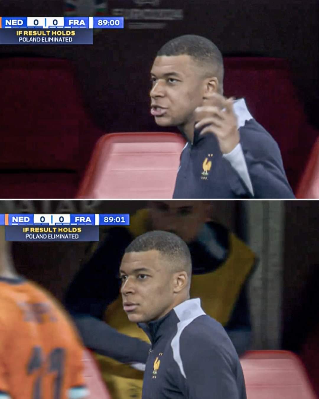 บ่อยครั้งที่กล้องจับภาพมาที่ท่านประธานเป้ ที่มีท่าทีหงุดหงิดบนม้านั่งสำรอง 😡