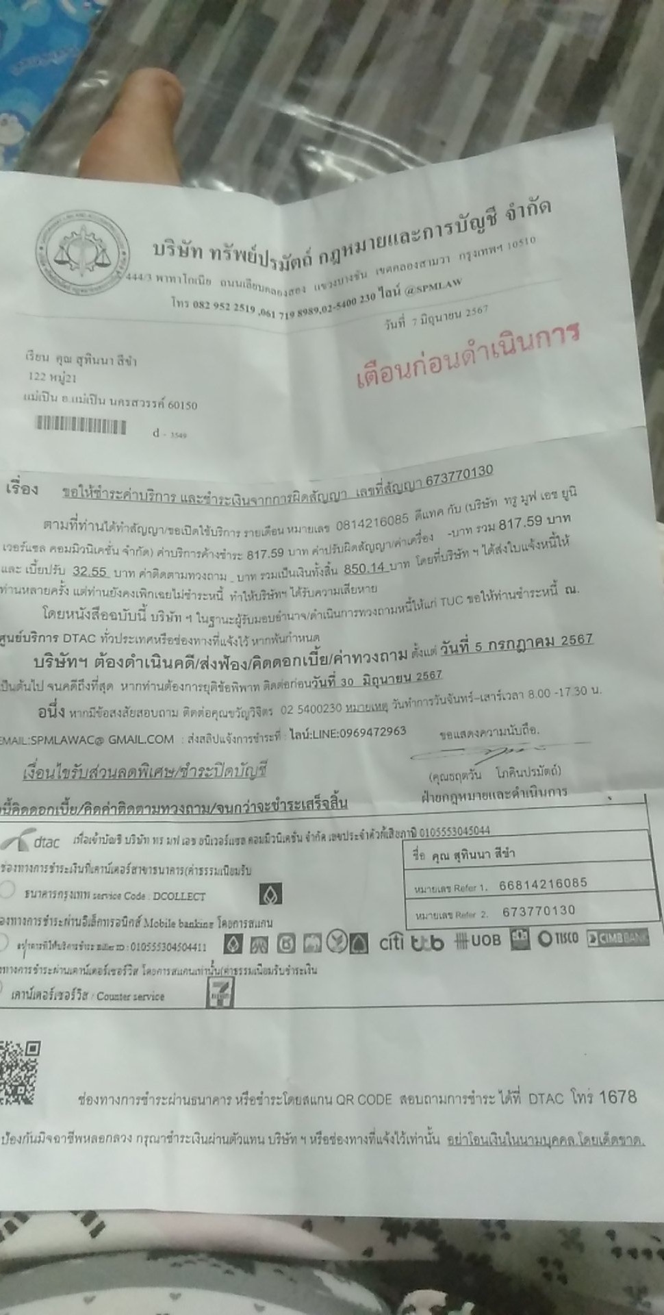มาจากบริษัทดีเทคจริงมั้ยครับเบอร์ถูกแต่เบอร์หายและไม่ได้ใช้นานแล้วมีหมายมาครั้งแรก