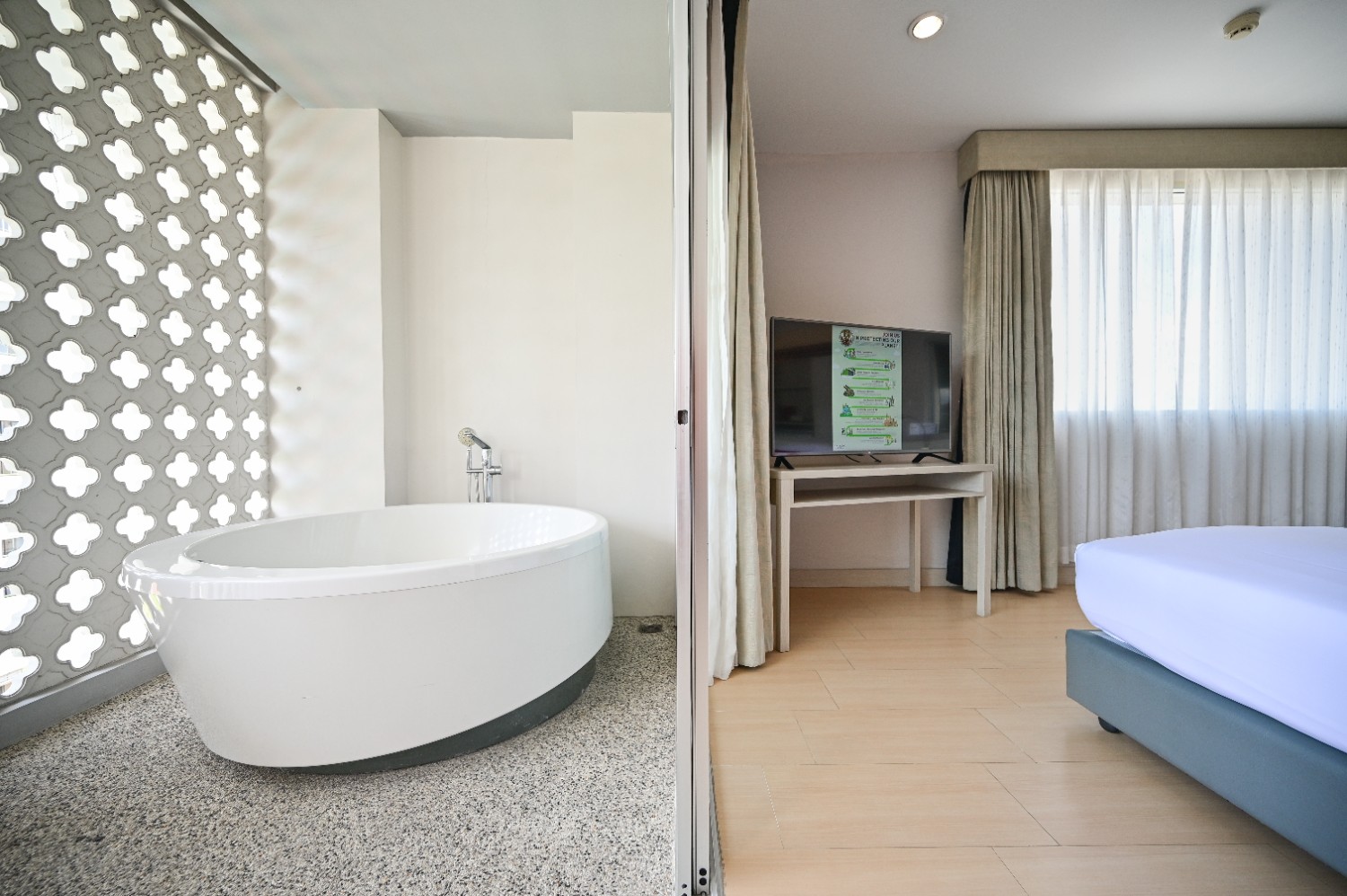 🏢 ห้องพักมีให้เลือกหลาย Type ครั้งนี้เราพักห้อง Junior Suite ห้องกว้างมาก เตียงนอนใหญ่ถึง 7 ฟุต นอนสบายสุดๆ และมีอ่างอาบน้ำที่อยู่ตรงระเบียง ให้แช่ฟินๆ ชมวิวเขา สิ่งอำนวยความสะดวกในห้องก็มีครบครัน