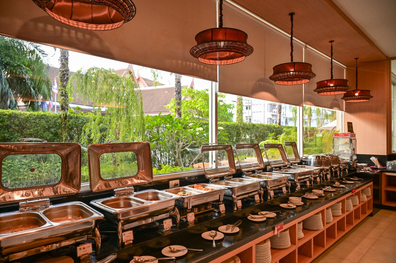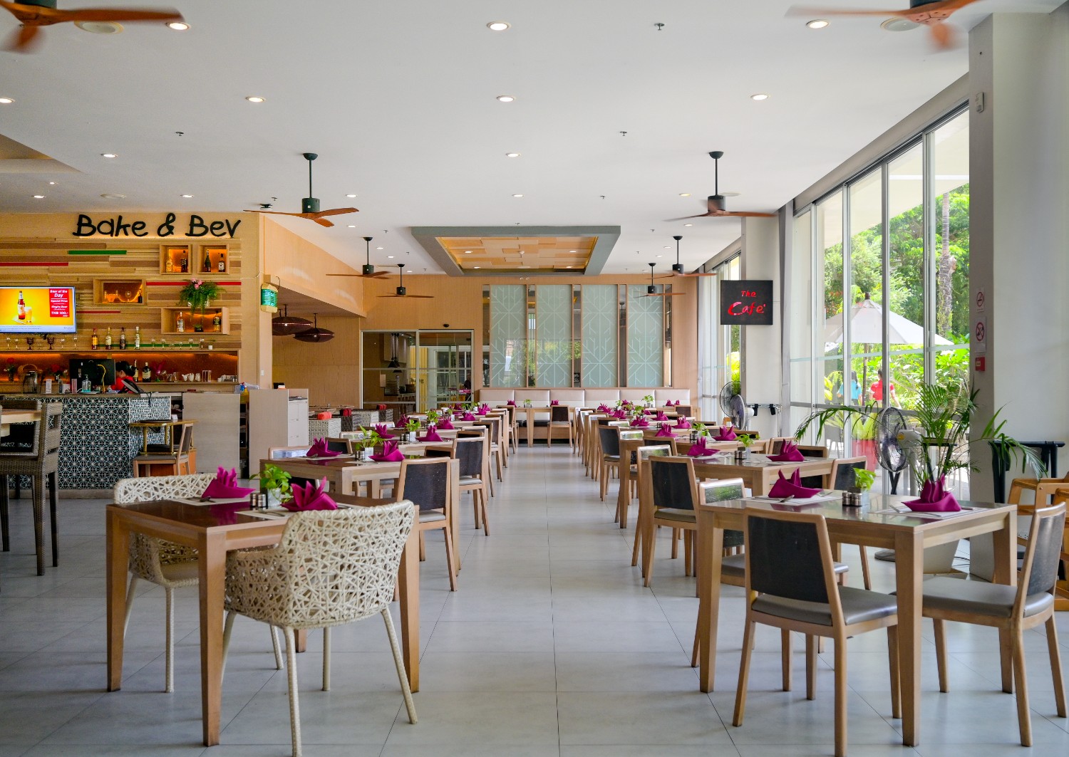 🍔🥖 มีห้องอาหาร The Cafe ที่เป็น All Day Dining ให้บริการอาหารหลากหลายเมนู ตั้งแต่มื้อเช้าที่เป็นบุฟเฟต์ ไปจนถึงมื้อเที่ยง และเย็นแบบ A La Carte ใกล้ๆ กันก็ยังมี Bake & Bev Bar ที่ให้บริการขนม และเครื่องดื่มอร่อยๆ ด้วย