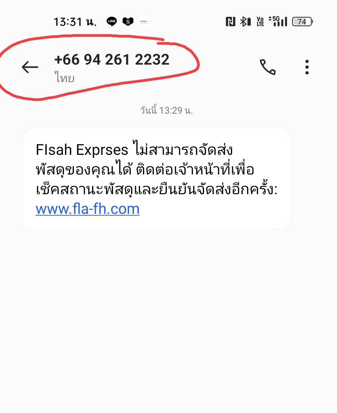 ** สังเกตคำว่า Flash Express มิจจะพิมพ์ตัวอักษรภาษาE.สลับไปสลับมา และมันใช้ฟ้อนท์อักษรเดียวกัน ถ้าไม่สังเกตดีๆจะคิดว่าคือขนส่งแฟลชจริงๆ