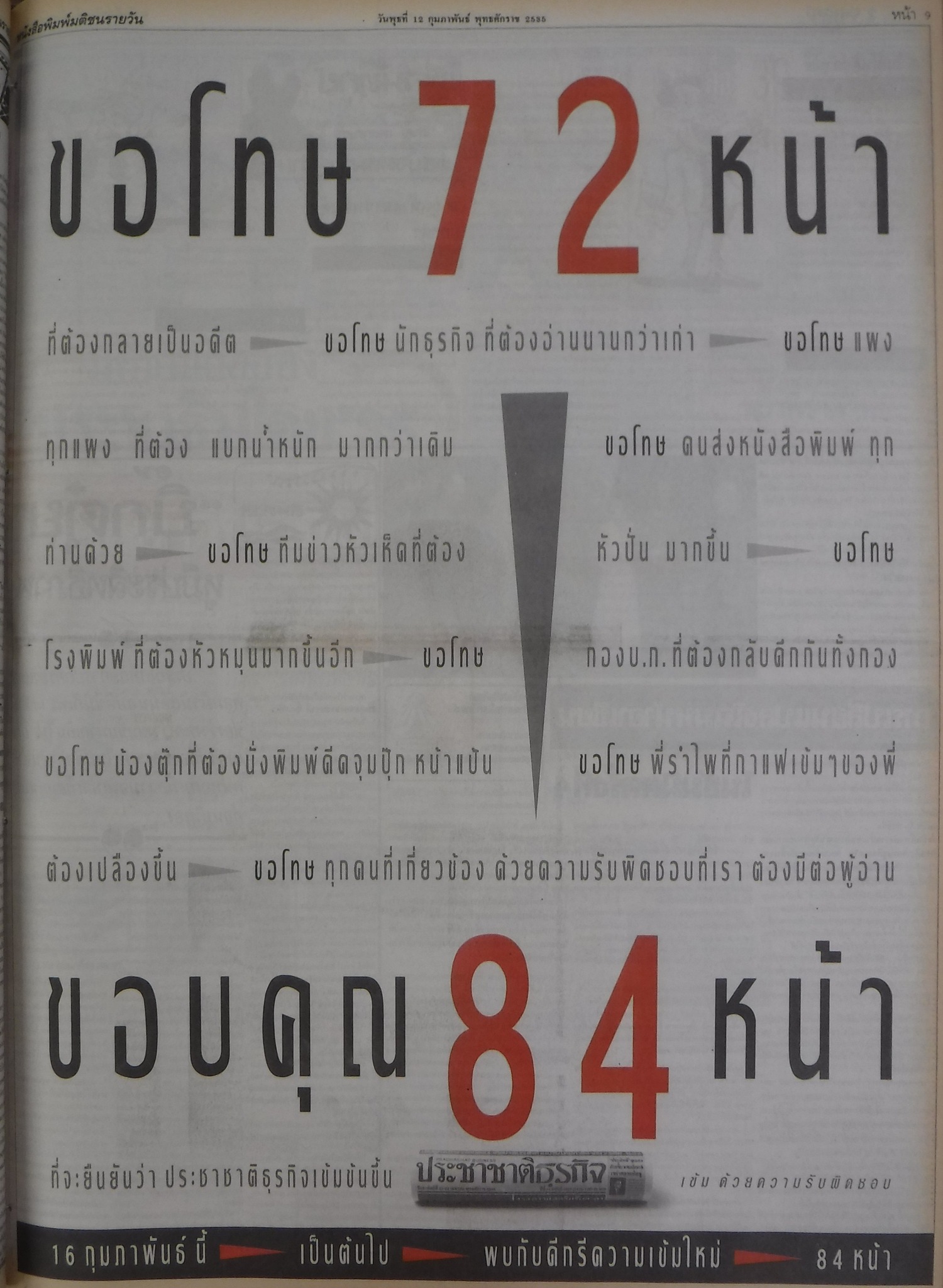 โฆษณาหนังสือพิมพ์ประชาชาติธุรกิจ เมื่อปี พ.ศ. 2535
