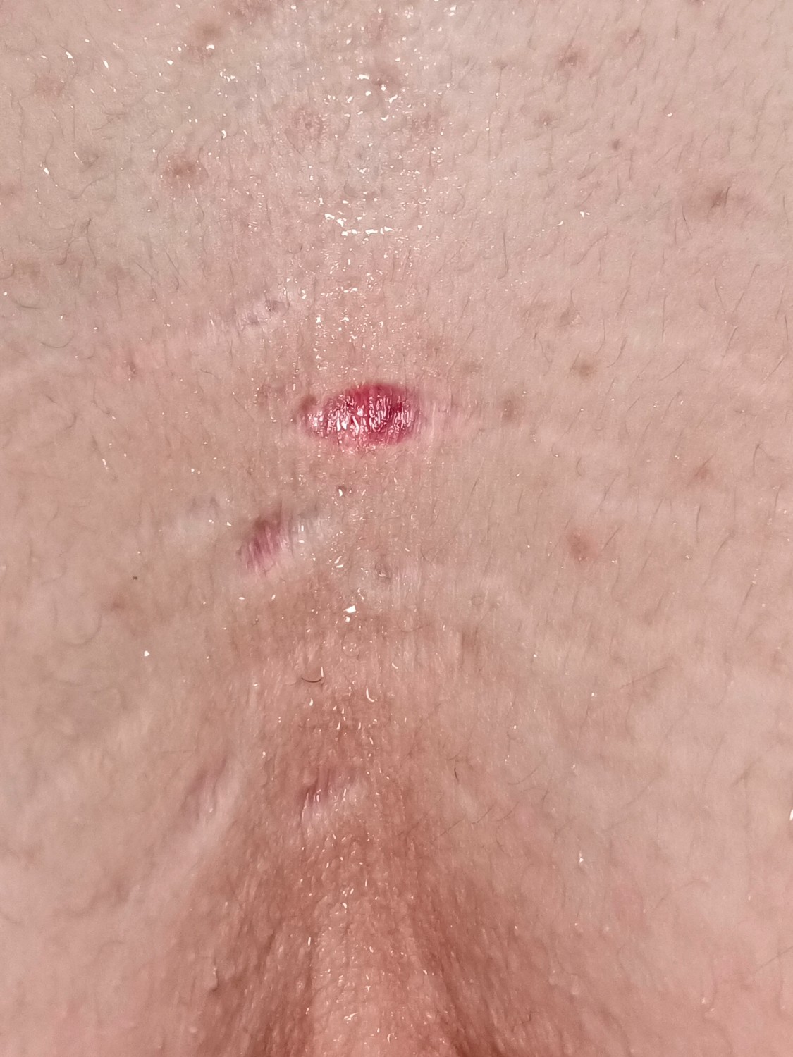 คือรอยนี้เพิ่งจะมีตอนเช้านี้ และเมื่อวานก็ไม่มี ลอยนี้ พอแตะดูก็ไม่รู้สึกเจ็บอะไรแต่แค่สงสัยว่ามันเป็นรอยอะไร ตอนตื่นก็นึกว่าเป็นแค่รอยที่ถูกกดทับจากการนอนอะไรทำนองนี้เดี๋ยวก็หายแดงแต่พอไปอาบน้ำล้างหน