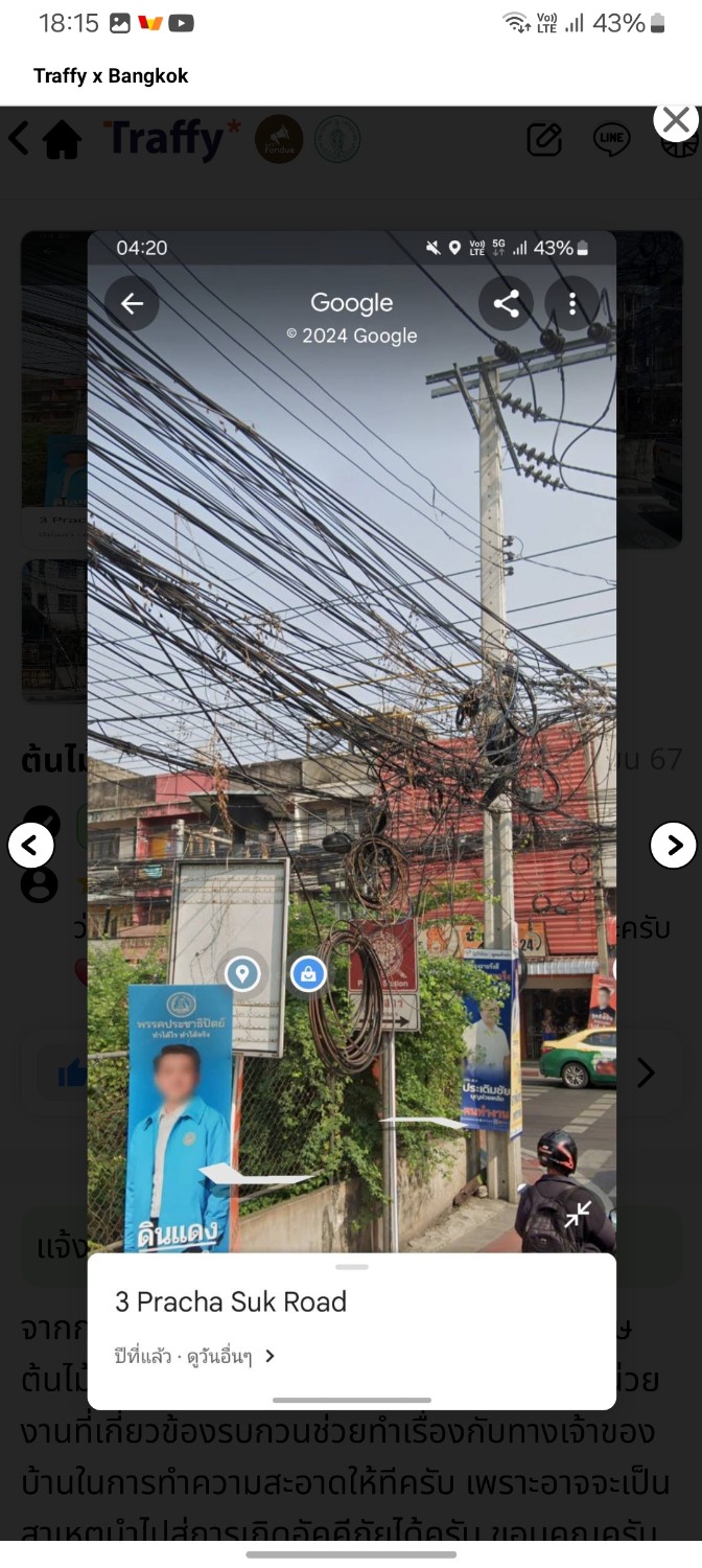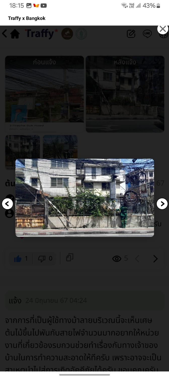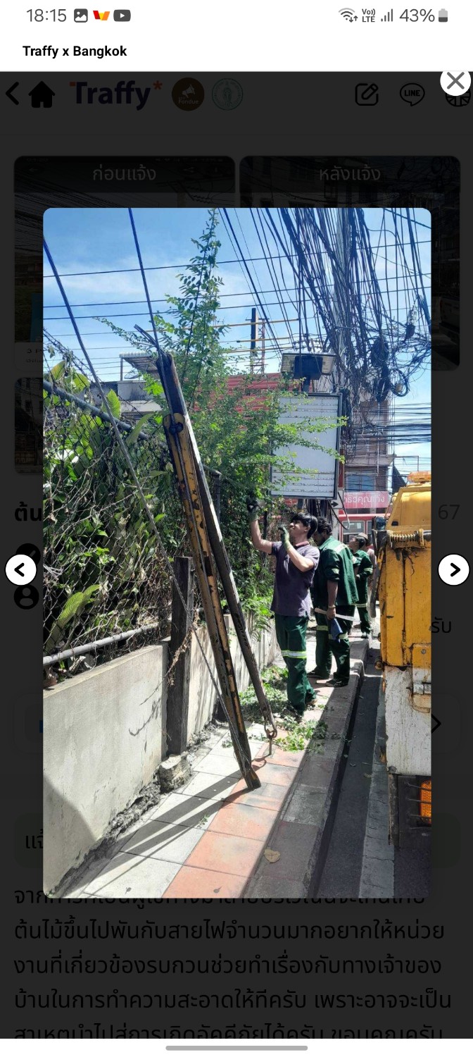 สวัสดีครับทุกคนคือมีเรื่องอยากมาส่งต่อสิ่งดีๆ ผมได้ทำการร้องเรียนกับทางไลน์:Traffy ของท่านชัชชาติเรื่องมีไม้เลื้อยขึ้นไปบริเวณเสาไฟซึ่งบริเวณนั้นเป็นจุดที่ตรงกับทางเท้าเเละอาจจะทำให้เป็นสาเหตุของไฟไหม้ได้ซึ่งอยู่ในเขตรับผิดชอบของดินเเดง เเละนี้ผลลัพธ์ที่ได้