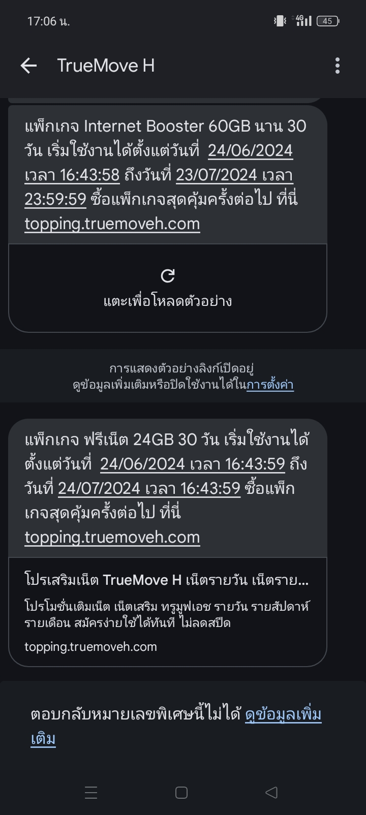 สมัครเน็ตทรูแล้วไม่ได้รับข้อความ แต่เสียตังไปแล้ว