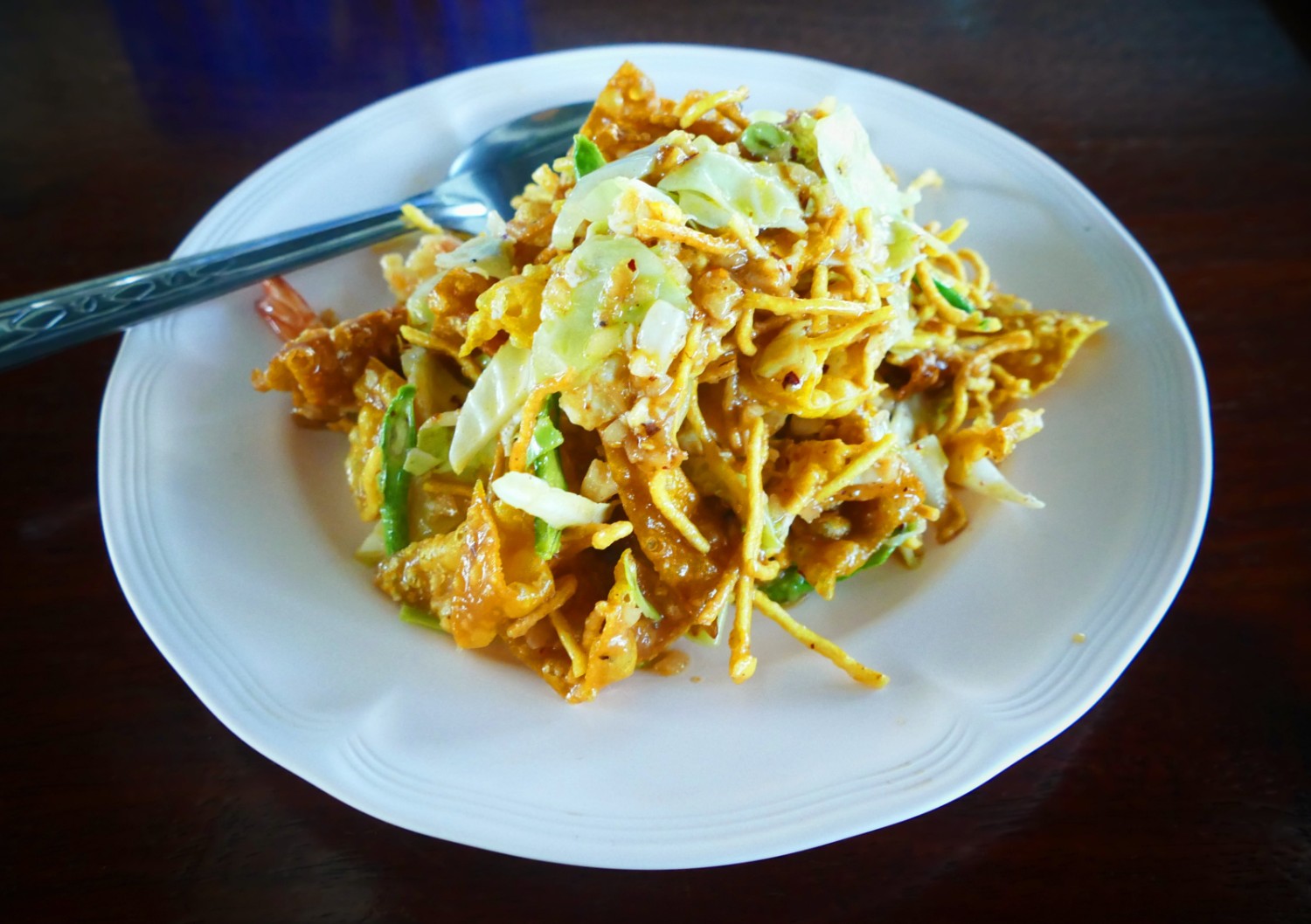 ชื่อชั้นความอร่อย มีหลากหลาย แต่ผมเกรงจะทานไม่ไหว เลยลอง ผัดไทยเกี้ยวกรอบกุ้งสด ก็อร่อยดีครับ แต่ส่วนตัวชอบเส้นเล็กปกติมากกว่า