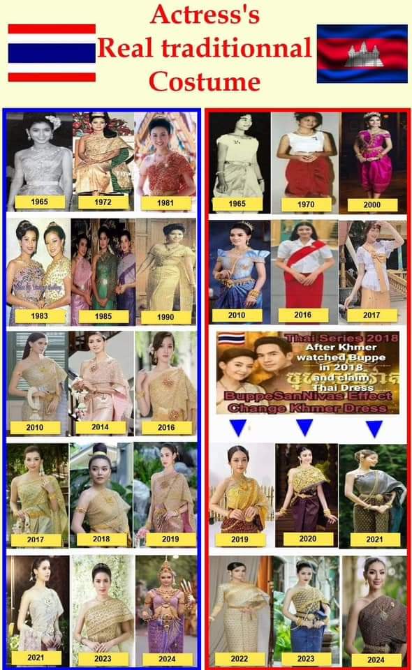 ทำไมเดี๋ยวนี้เขมรเริ่มใส่ชุดไทยของเราล่ะแล้วเคลมว่าเป็นชุดดั้งเดิมของเขมรแล้วมาด่าไทยว่าขโมยวัฒนธรรมทุกอย่างไป