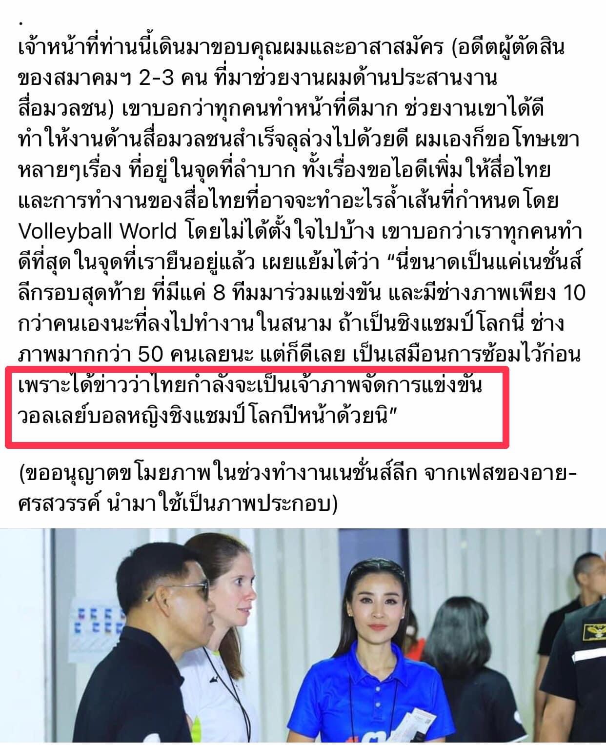 หลังจากไทยเราได้เป็นเจ้าภาพวอลเลย์บอลหญิงชิงแชมป์โลกไปแล้วและได้รับคำชมจากfivbด้วย ไทยเราไม่สนใจเป็นเจ้าภาพจัดวอลเลย์บอลชายชิงแชมป์โลกดูบ้างเหรอครับ สนามเราก็มี แฟนวอลเลย์บอลเราก็มีผมว่าน่าสนใจนะสมาคม