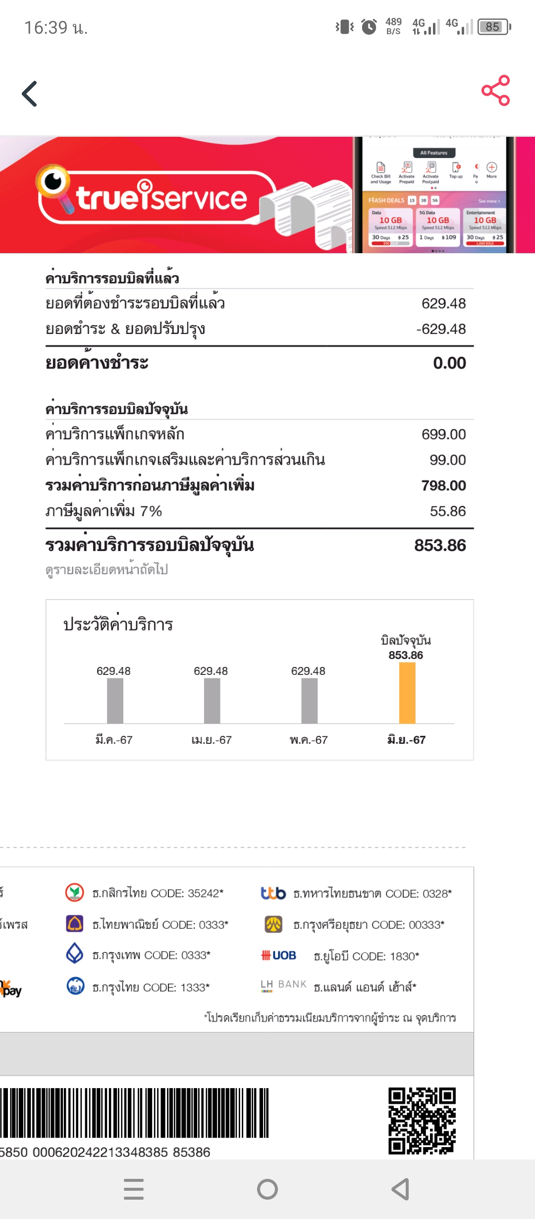 ยกเลิกแพกเกจเสริมAsian Combo รายปี 999 บาทของทรูไปแล้วทำไมถึงยังมียอดบิลมากอีกคะ???