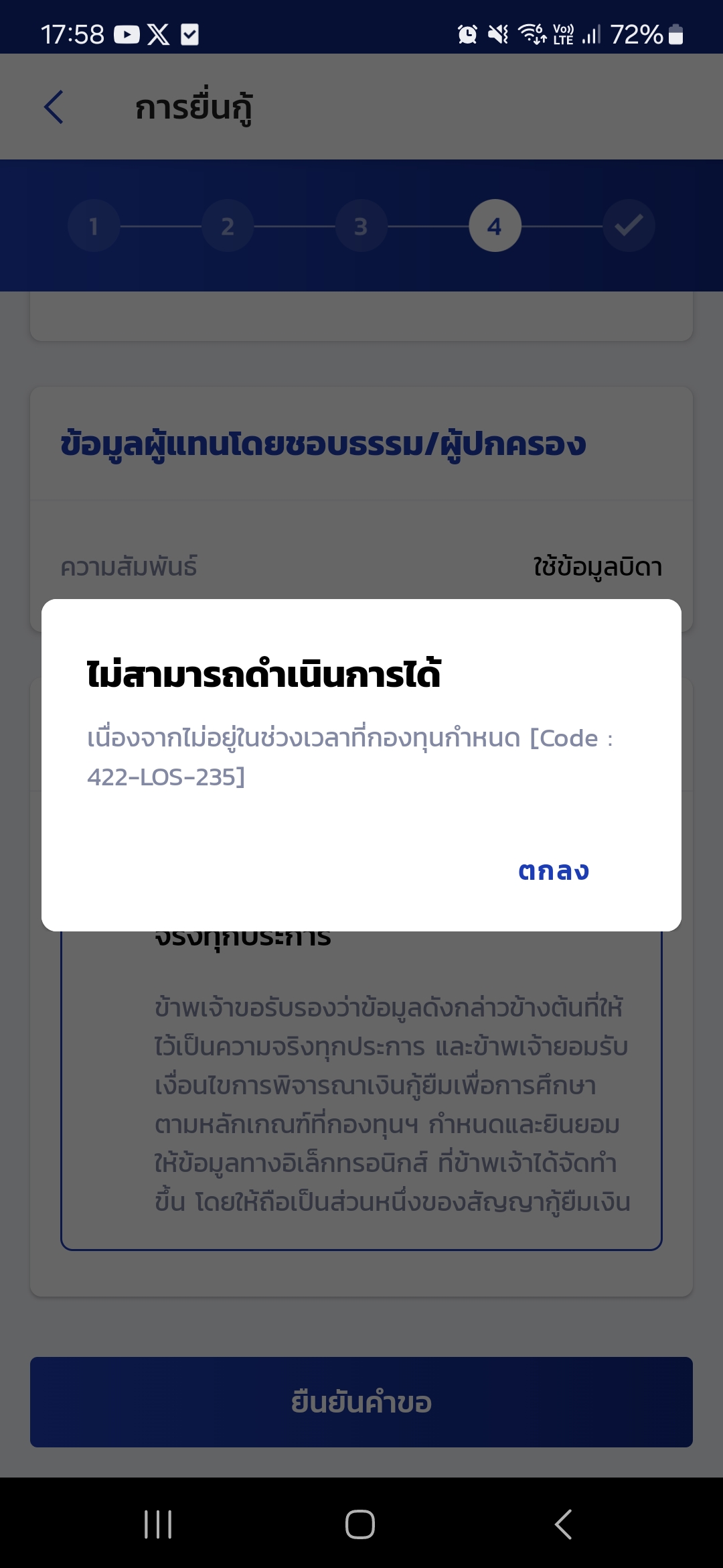 ทำไมกยศ.มันขึ้นแบบนี้ค่ะไม่สามารถดำเนินการได้