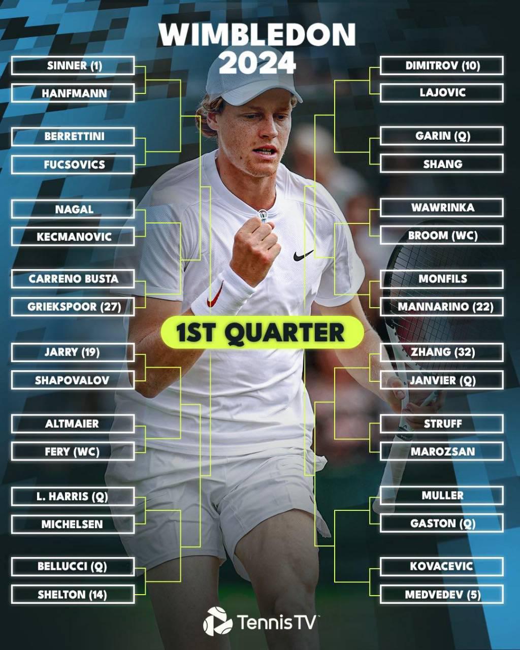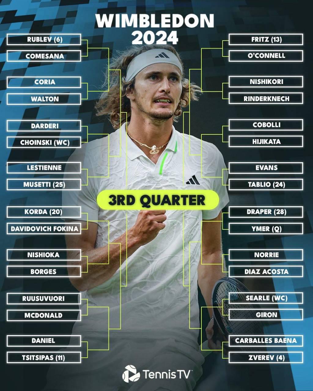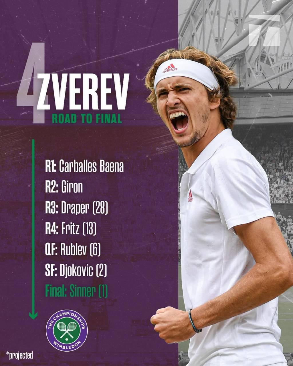 สายบนได้คนเข้า8คนแล้ว เดาง่าย สายล่างถึงจะรอบ16คนอยู่ แต่ดวยความอัจฉริยะของเม็ดก็ทำนายได้ไม่ยากครับ ...ส่วนรอบชิง Zverev ชนะ Sinner คว้าแสลมแรกไปครอง ครับ