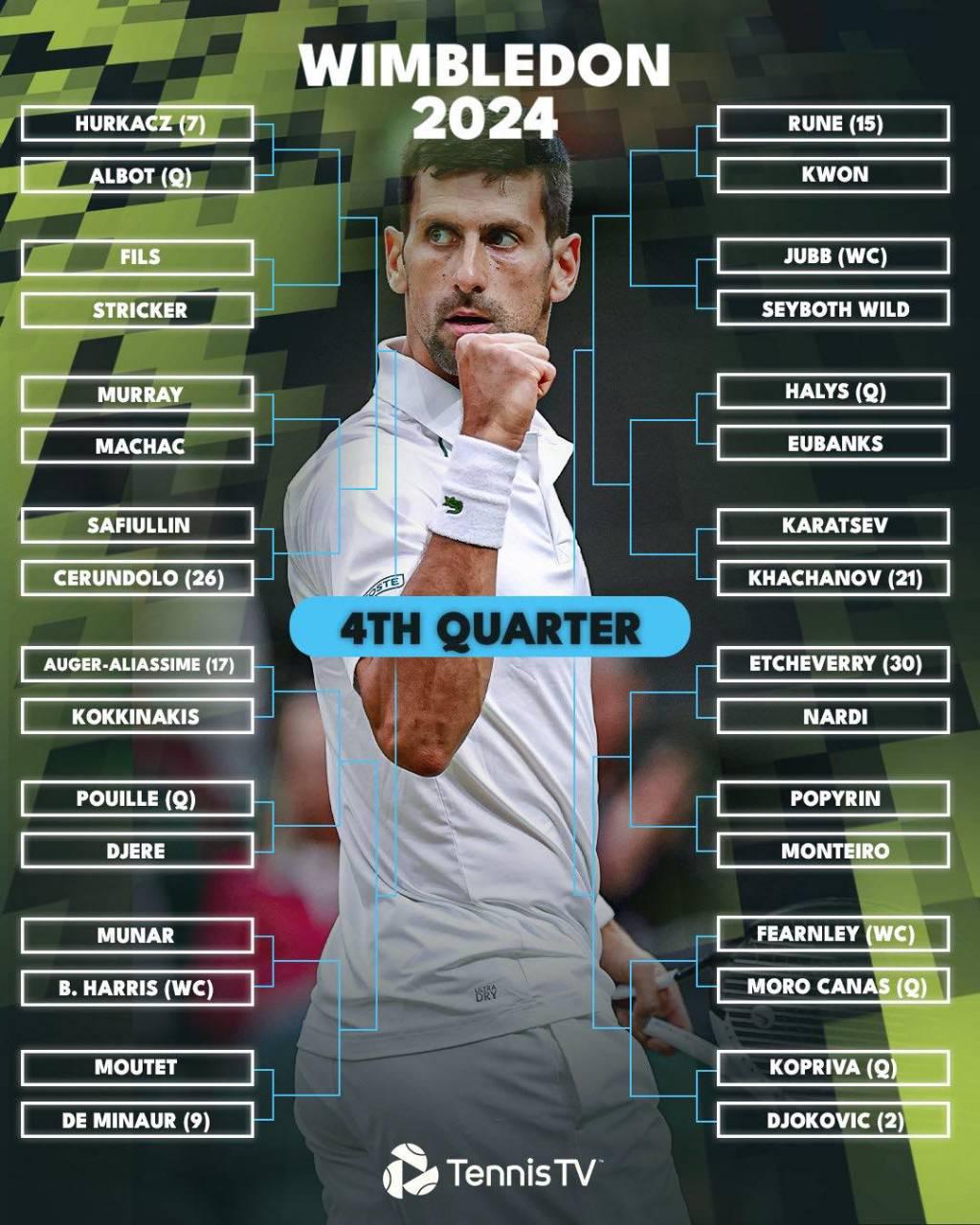 สายการแข่งขันเทนนิส วิมเบิลดัน 2024 ครับ