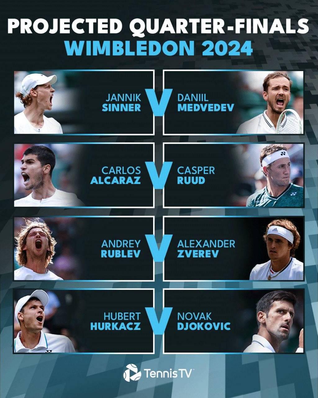 เม็ดให้ Sinner / De Minaur / Zverev / Alcaraz เข้ารอบรอง WIMBLEDON 2024 ปีนี้