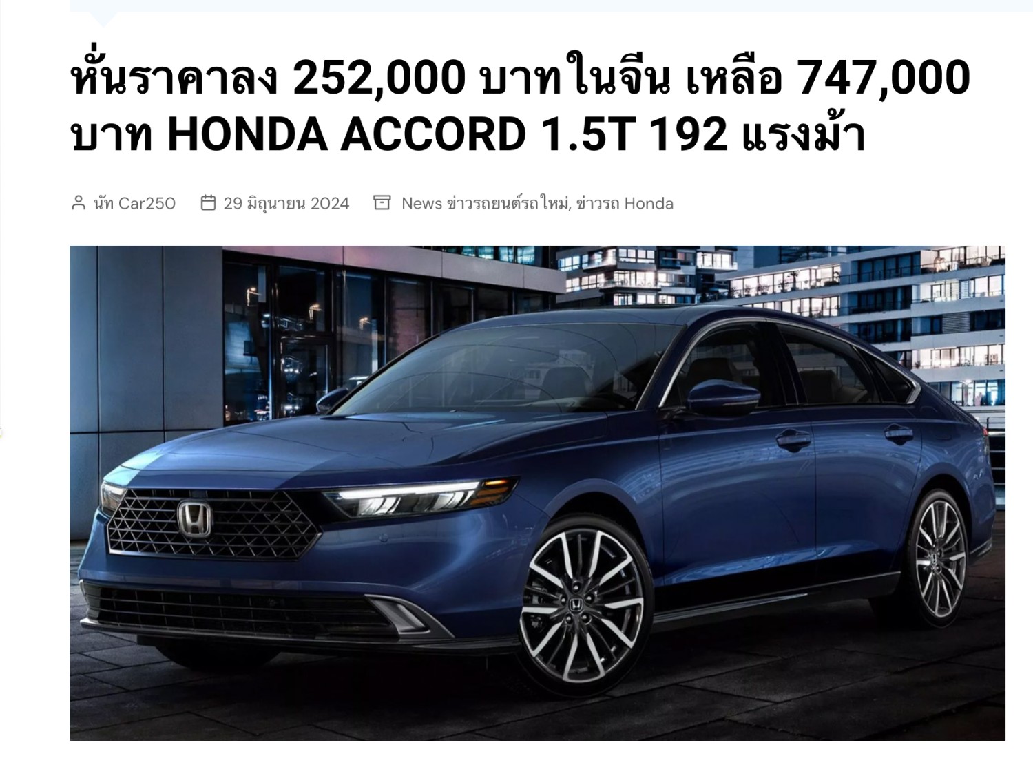 accord ในจีนขายแค่ 7 แสนกว่า ทำไมจีนเขาขายถูกจัง