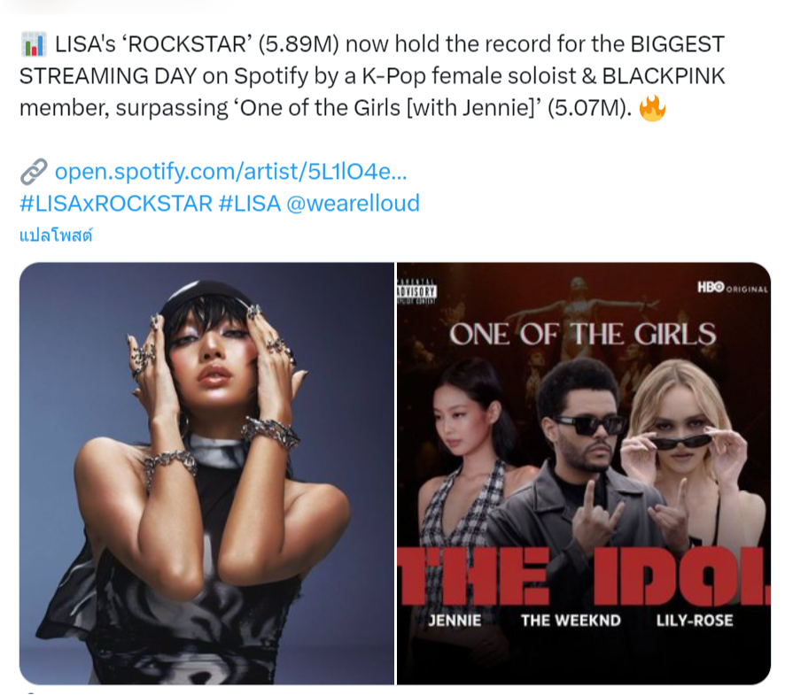 สถิติ เปิดตัวเพลงของลิซ่าบน spotify