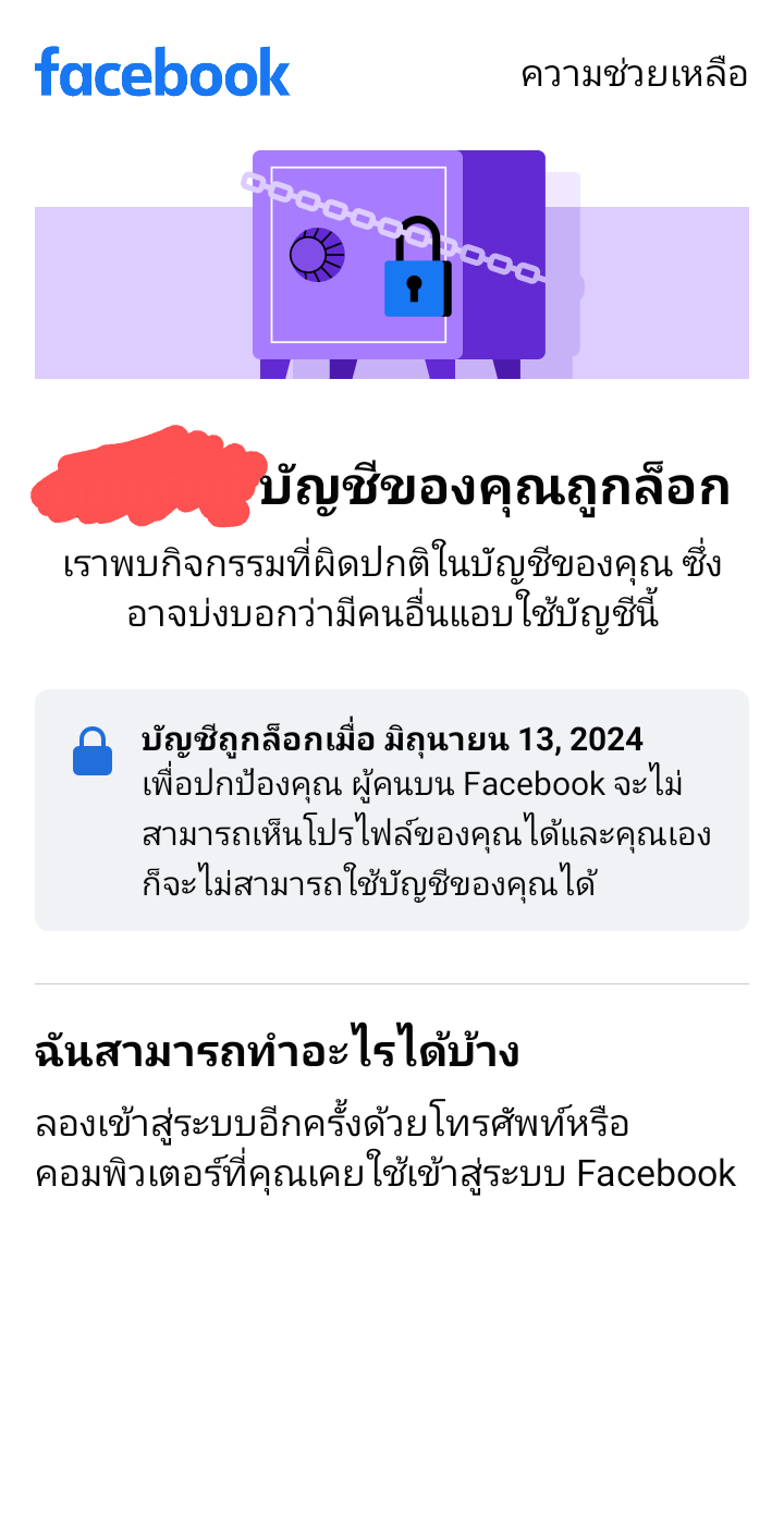 เฟสเราโดนแฮกพอเราแก้ได้ ผ่านไป2วันเฟสเราโดนล็อค แก้ยังไงหรอครับ