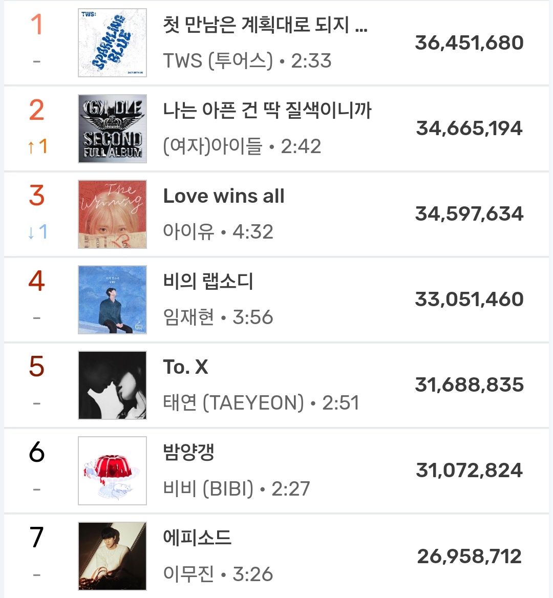 และจากยอดผู้ฟังรายวันตอนนี้ เนติเซนคาดว่ามีโอกาสที่เพลงนี้จะขึ้นอันดับ 1 ในตอนท้ายเช่นกัน