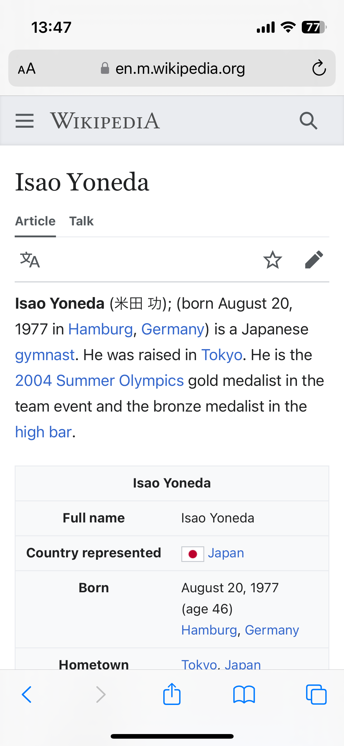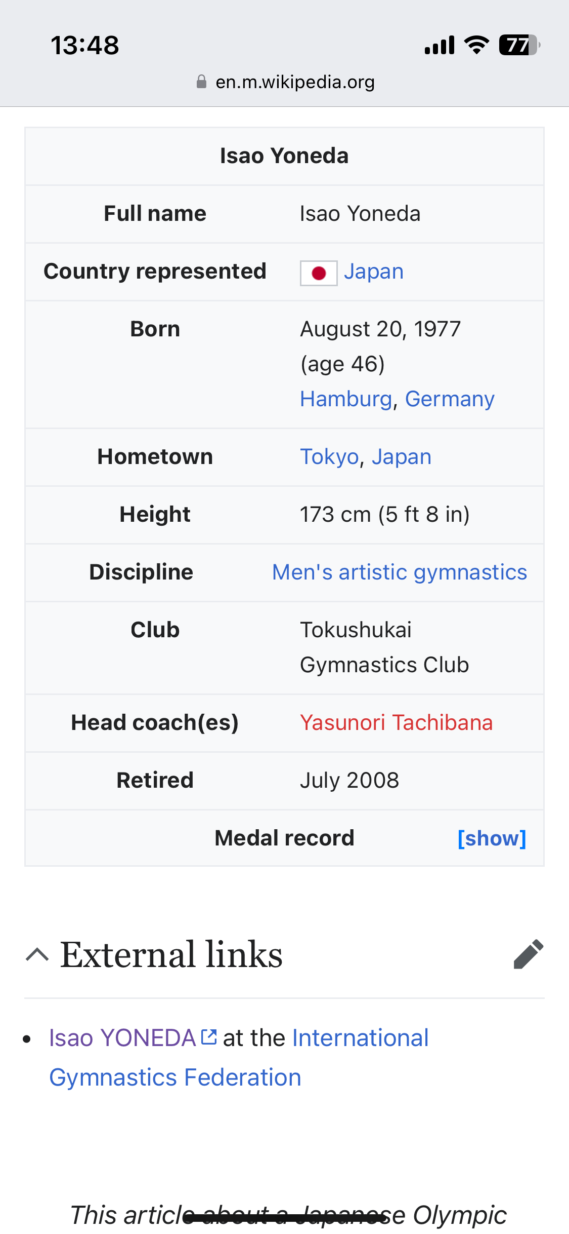 Isao Yoneda คือ ตำนานนักยิมนาสติกชายของญี่ปุ่นในยุคที่วงการยิมนาสติกญี่ปุ่นตกต่ำ เขาเป็นนักยิมนาสติกชายชาวญี่ปุ่นที่มีชื่อเสียงระดับนึงในยุโรป เนื่องจาก้ขาเกิดและเติบโตที่ประเทศเยอรมนี รวมทั้งได้รับการฝึกยิมนาสติกจากประเทศบ้านเกิดของเขา แต่ได้มาฝึกยิมนาสติกแบบจริงจังที่ประเทศพ่อแม่แท้ๆของเขา Isao Yoneda ได้เข้าร่วมแข่งขันในมหกรรมกีฬาโอลิมปิกแค่ครั้งเดียวคือ โอลิมปิกปี 2004 ที่เอเธนส์ โดยในโอลิมปิกปี 2004 ที่ Athens ประเทศกรีซ เขาสามารถช่วยให้ญี่ปุ่นคว้าเหรียญทองโอลิมปิกในประเภททีมชายมาครองได้หลังจากที่ญี่ปุ่นว่างเว้นจากเหรียญทองประเภททีมชายในโอลิมปิกไปนานถึง 28 ปี และก็สามารถคว้าเหรียญทองแดงโอลิมปิกในประเภทบาร์เดี่ยวมาได้ หลังจากโอลิมปิกที่ปักกิ่งปี 2008 จบลงเขาก็ได้ผันตัวไปเป็นโค้ชและเทรนเนอร์ให้กับนักกีฬายิมนาสติกญี่ปุ่นรุ่นใหม่พร้อมทั้งก่อตั้งสโมสรยิมนาสติกเป็นของตนเองโดยใช้ชื่อว่า Isao Yoneda Gymnastics Cartwheel Club ที่เปิดสอนสำหรับนักยิมนาสติกหญิงโดยเฉพาะ