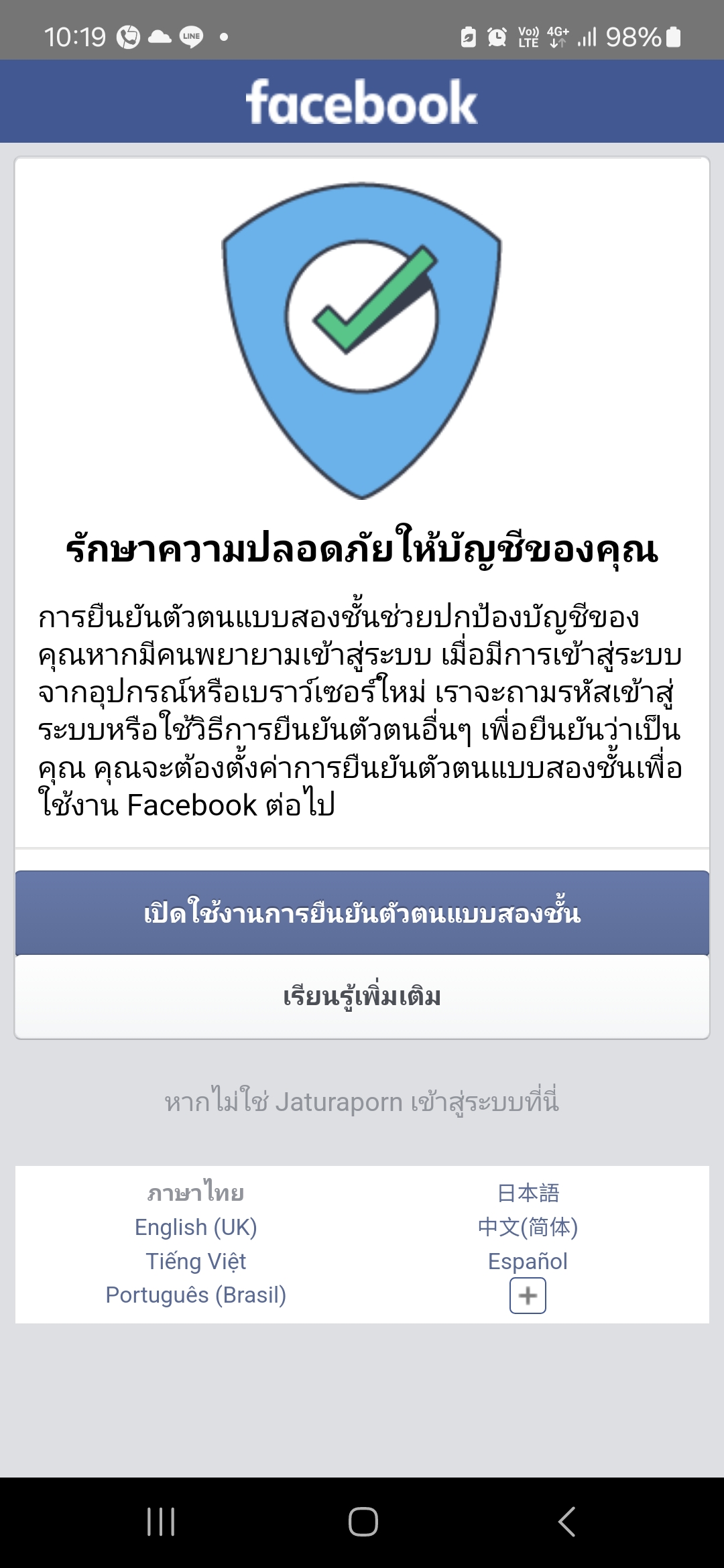 เฟสบุ๊คมีปัญหา ขึ้นให้เปิดยืนยันตัวตน2ชั้น พอกดแล้วก็เข้าไม่ได้
