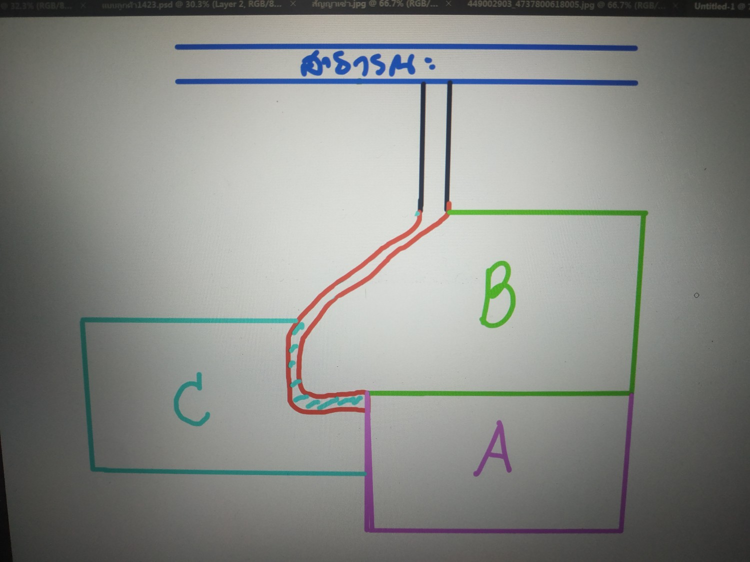 หลังจากนั้นก็ได้เอกสารใบ ส.ป.ก มา ก็ได้ทำไร่แปลง สีม่วง แต่เป็นชื่อของนาง A มาเรื่อยๆโดยใช้ทางเข้าออกตามเส้นสีแดง ร่วมกันมา เป็นเวลาหลายสิบปี