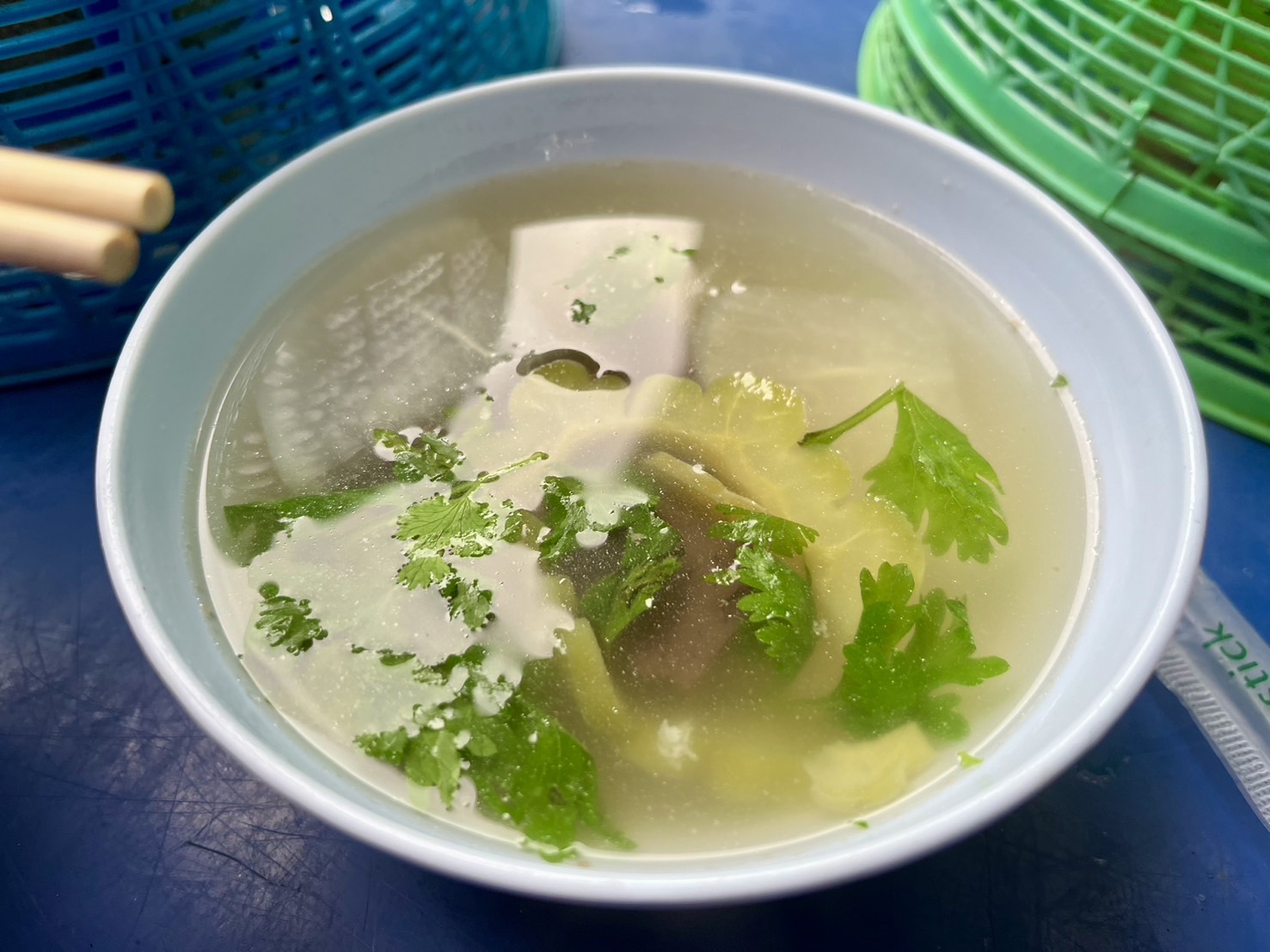 แวปแรกที่เห็นคือ ไก่นุ่มแน่นอน เออซุปแปลกดีเป็นน้ำใสใส่มะระด้วย ไม่รอช้าชิมซุปก่อนเลย ว้าวแรก เออดีแฮะ บางๆกำลังอร่อย