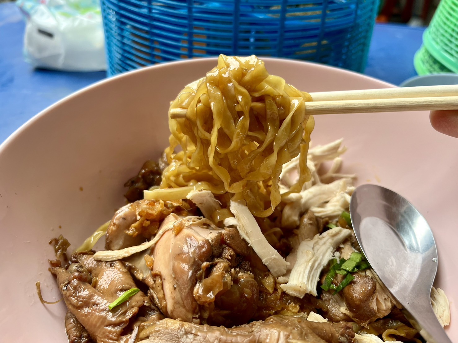 ว้าวที่สอง โอ้ว เส้นเป็นเส้นแบนด้วย คือด้วยความที่หน้าตัดเยอะกว่า พอเส้นไปเคลือบกับพริกแล้วมันจะเจ้มจ้นมากขึ้นไปอีกครับ