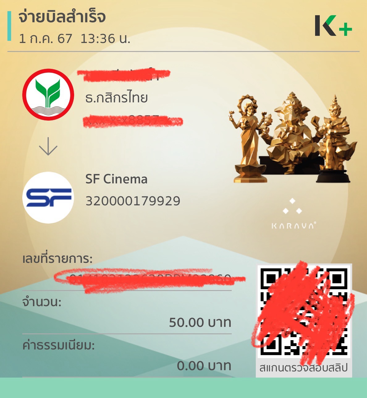 เราซื้อ พลัสแพ็ก พลัสคุ้ม ของ sf แล้วจ่ายผ่าน kplus เราได้คิวอาร์โค้ดแบบนี้มาใช้ยังไงคะ