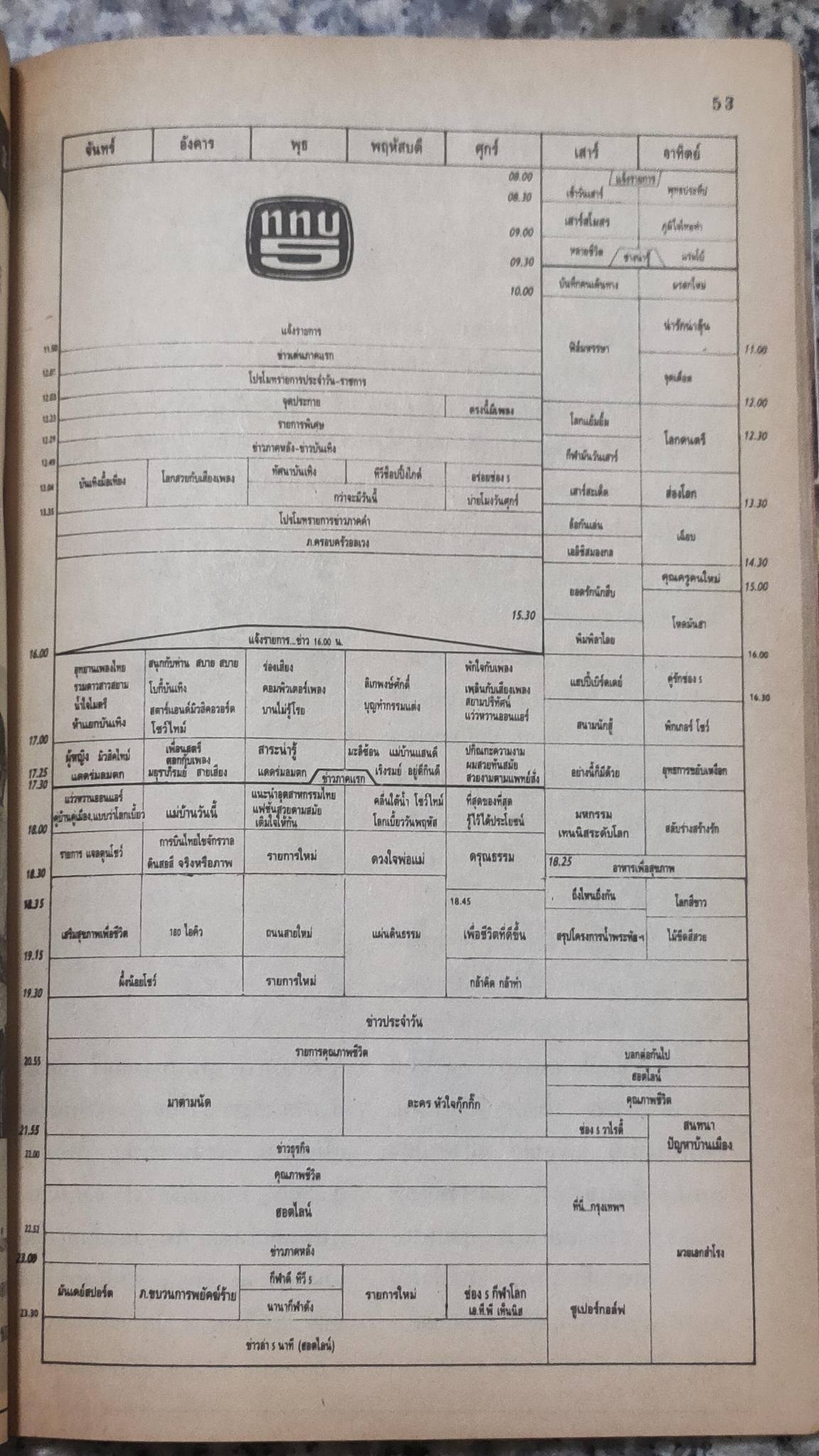 ผังรายการโทรทัศน์ช่อง 3 - ททบ.5 - ช่อง 7 สี - ช่อง 9 อสมท. - สทท.11 ประจำวันที่ 19 - 25 ตุลาคม 2533 Credit ภาพ: Classic Zone
