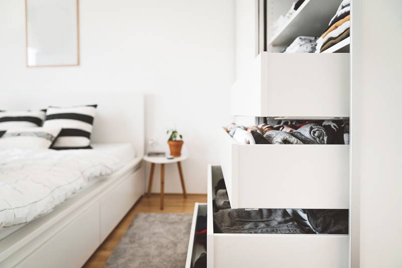 จัดเรียงเสื้อผ้าตามลักษณะการใช้งาน ตัวไหนใช้บ่อยก็เก็บไว้ในที่หยิบเอามาใส่ได้ ตัวไหนใส่ไม่บ่อยก็เก็บไว้ที่อื่นอย่างใต้เตียงหรือเอาไว้ในห้องเก็บของ