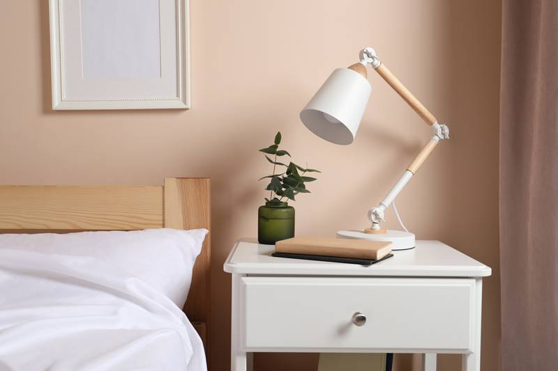 ก่อนอื่นเก็บของตู้ข้างที่นอนหรือชั้นวางของข้างที่นอนก่อนให้วางสิ่งของจำเป็นสำหรับเวลานอนเท่านั้น เช่น แว่นสายตา นาฬิกาปลุก หาถาดหรือตะกร้ามาใส่ของให้เป็นที่เป็นทาง เมื่อถึงเวลาพักผ่อนก็จะได้ไม่เห็นอะไรเกะกะสายตา