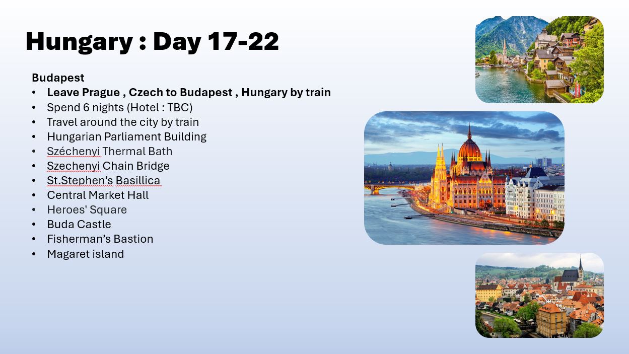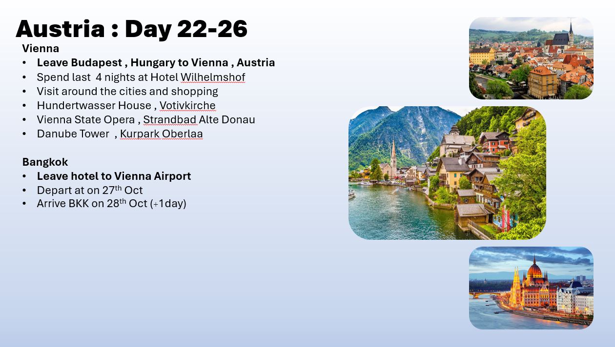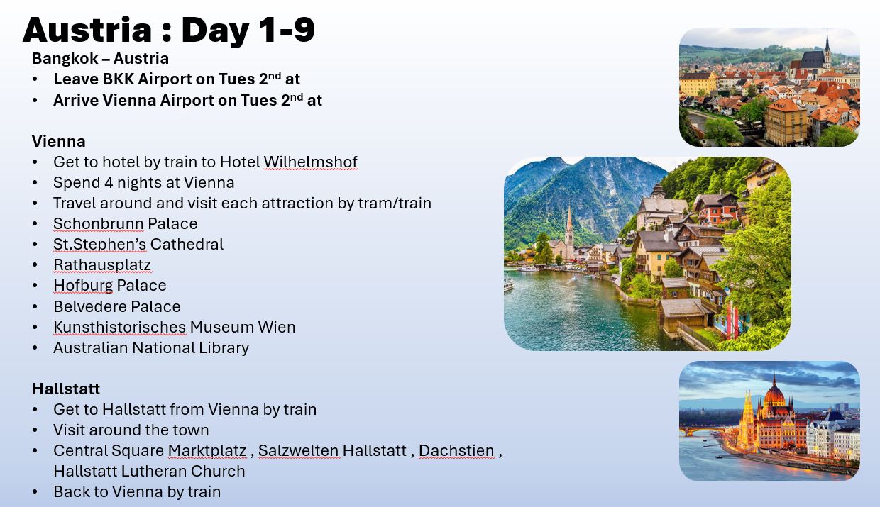 (สอบถามผู้รู้คร่า) ถ้าจะขอวีซ่าเชงเก้น Austria และมีไปที่ Czech และ Hungary ด้วย แพลนประมาณนี้ พอได้มั๊ยคะ