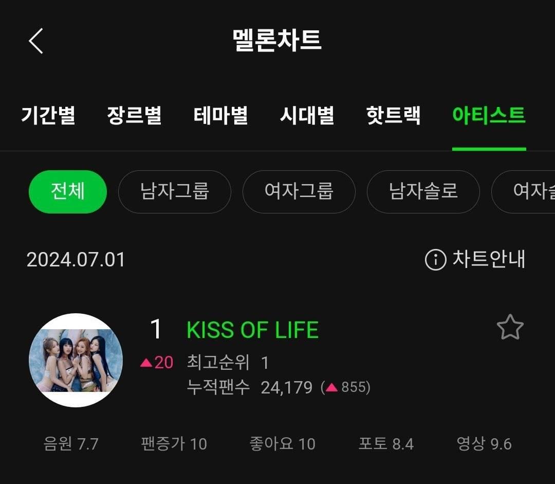 Kiss of life ขึ้นอันดับ 1 MelOn Artist Chart ประจำวันที่ 01.07.2024