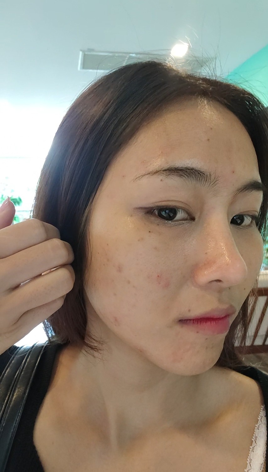 อันนี้เป็นหน้าของเราหลังจากกดสิวเสร็จทันที ก็ไม่ค่อยแดงแล้วบวมช้ำเท่าไหร่