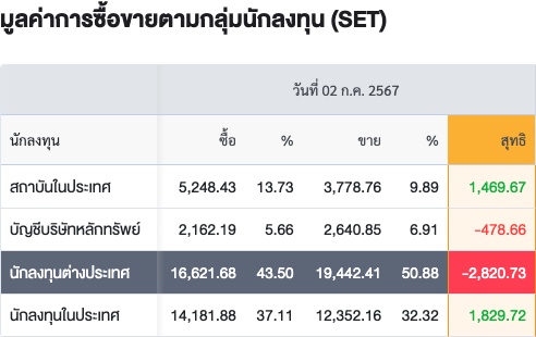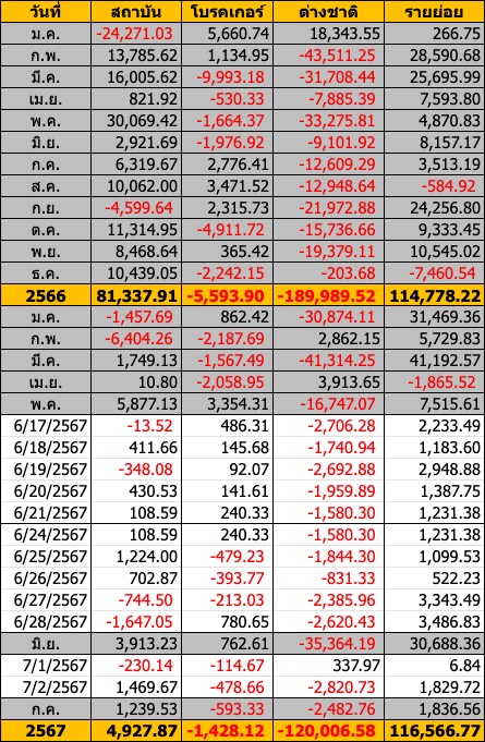 Sinthorn Summary 2/7/2567 : ต่างชาติขายสุทธิ -2,820.73 ลบ.
