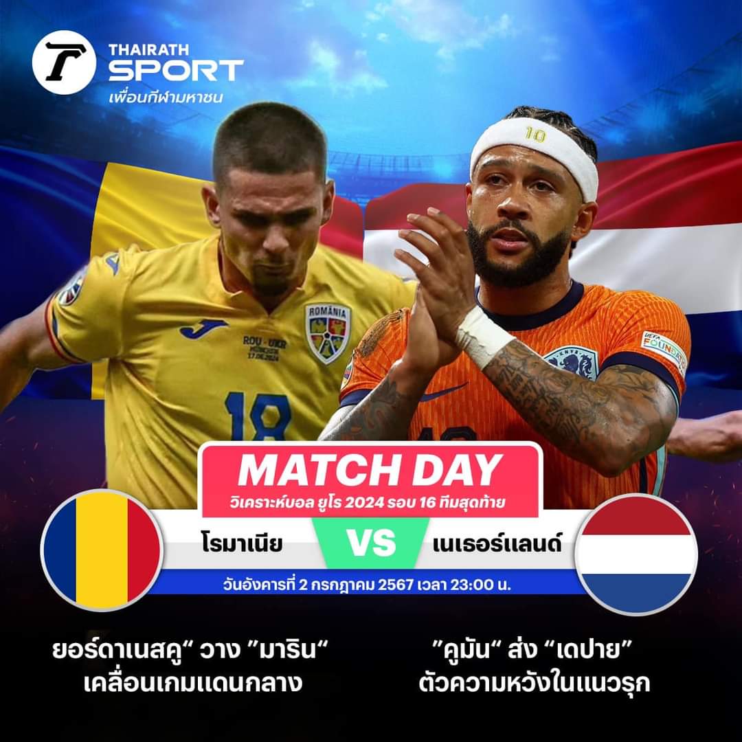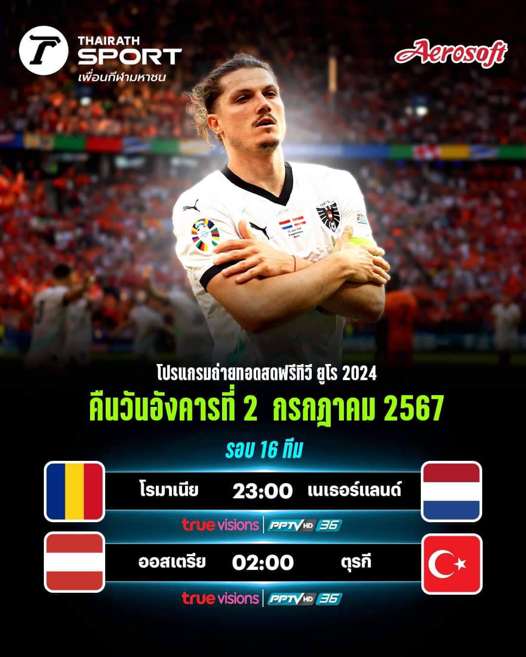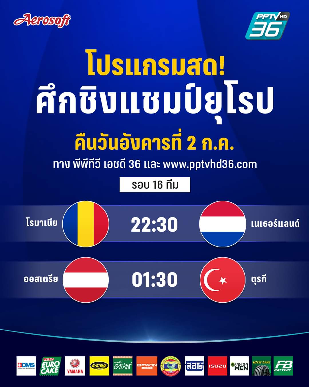 📌 คืนนี้ ⚽️ ฟุตบอลยูโร 2024 รอบ 16 ทีมสุดท้าย | 🇷🇴 VS 🇳🇱, 🇦🇹 VS 🇹🇷 ถ่ายทอดสดทาง PPTV HD36 📺