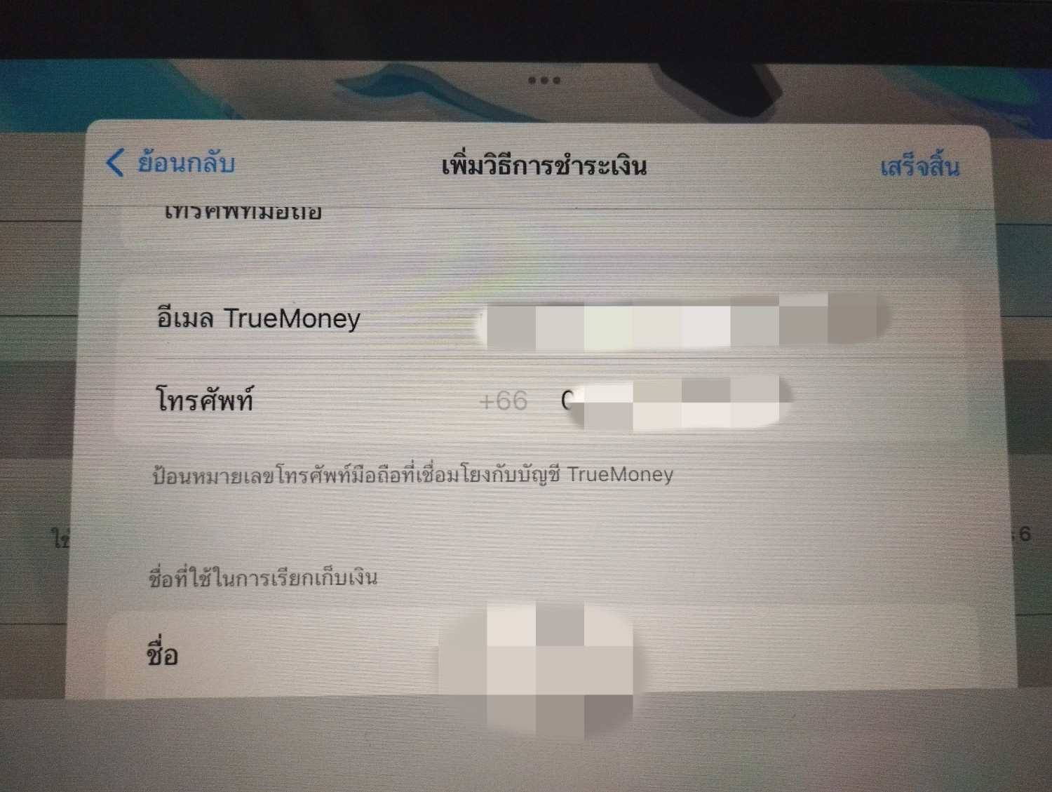 เพิ่มวิธีชำระเงิน truemoney ในไอแพดไม่ได้