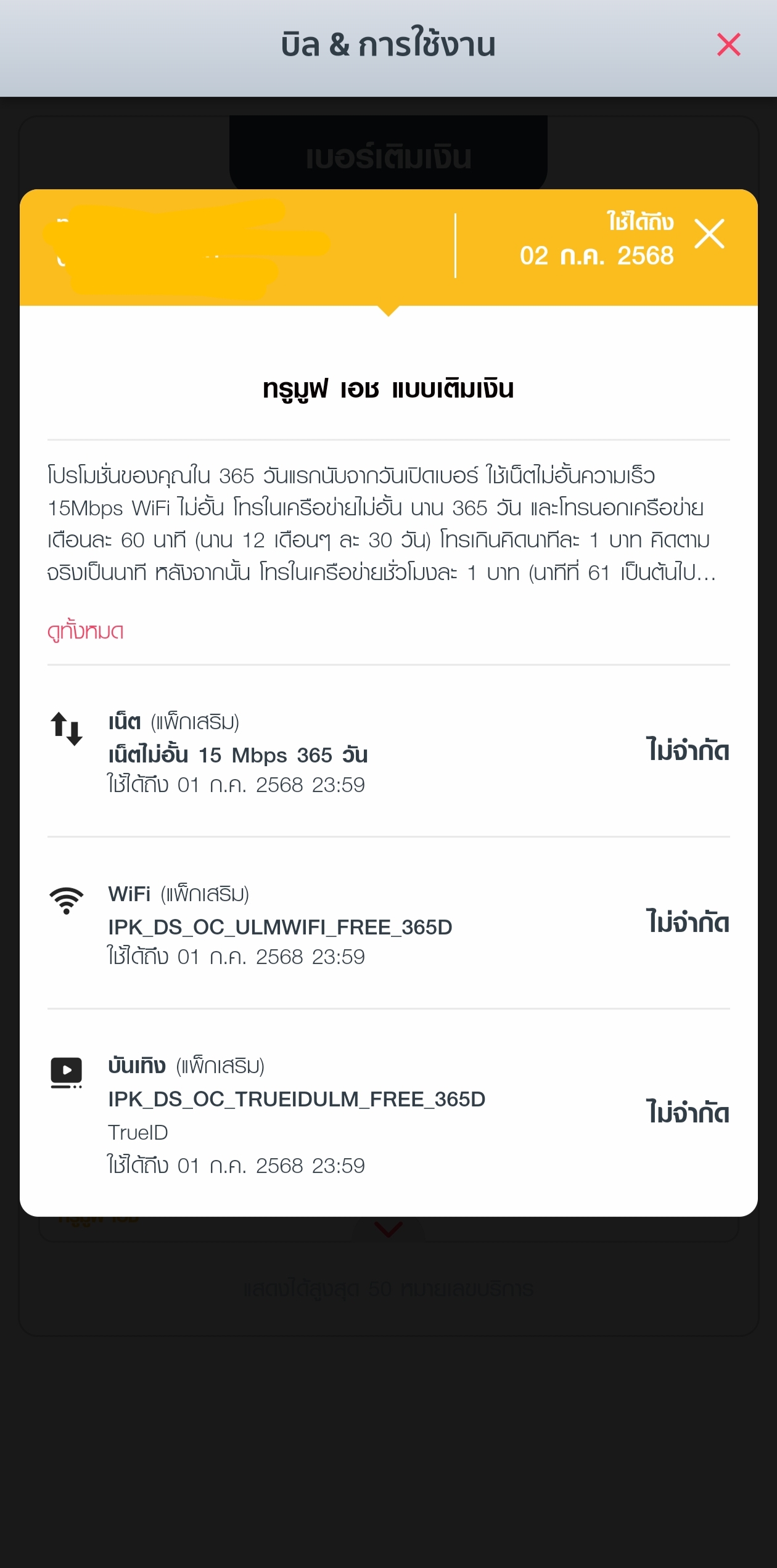 เบอร์ยังสมัคร เน็ตไม่อั้น 15 Mbps+ TrueID HD ไม่จำกัด พร้อมโทร ในเครือข่ายและ Wi-Fi นาน 1 ปี ราคา 1,790 บาท ได้หรือไม่ครับ
