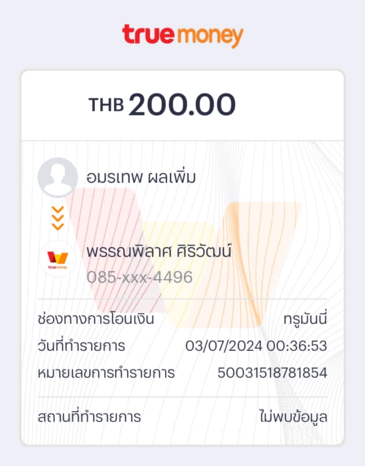 คือเราโอนเงินจาก kkp ในทรูวอเลต ไปบัญชีอื่น ยอดตัดแล้วรายการก็ขึ้นแล้วแต่ไม่มีสลิปให้จะกดเข้าไปดูรายการโอนก็ไม่มีสลิปให้ดูว่าโอนไปบัญชีปลายทาง ไม่มีสลิปยืนยัน